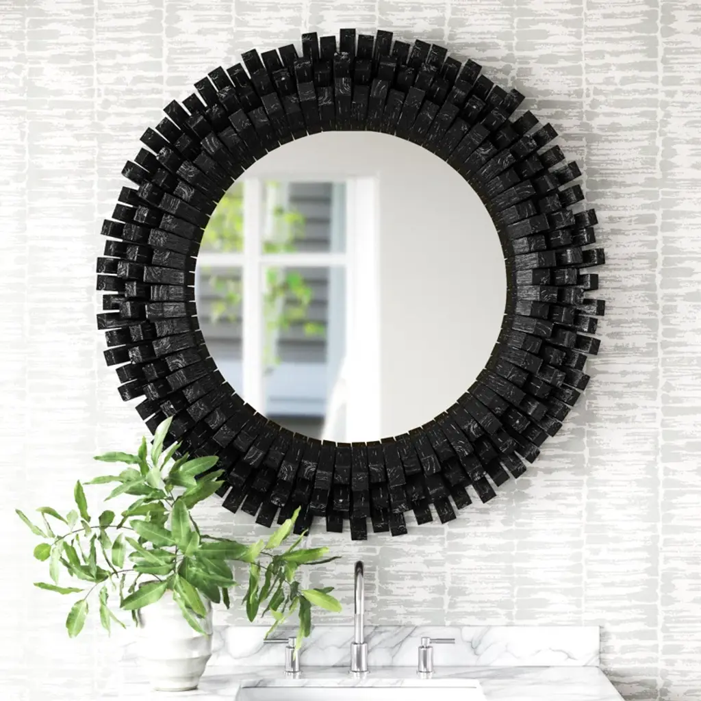 Add a touch of artistry to your home with this captivating accent mirror. Its unique sun burst shape effortlessly elevates your space, creating a sense of expansiveness. The floating frame design adds a contemporary flair, making it a perfect conversation starter in any room.