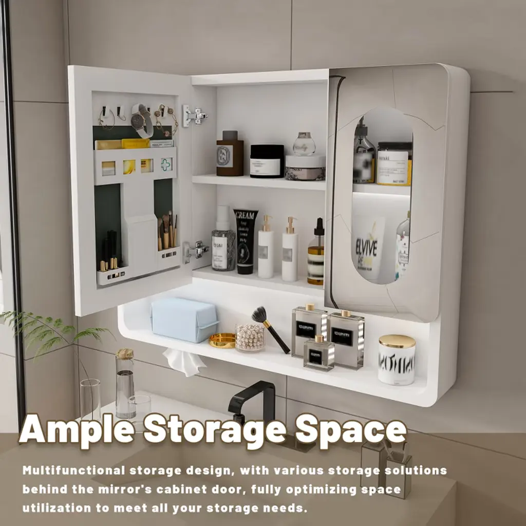 Upgrade your bathroom with the ORRD Wall Mounted LED Mirror Cabinet, designed to combine modern style with practical storage. Featuring built-in LED lights with three color settings, this cabinet offers adjustable brightness to match your grooming needs. The anti-fog and explosion-proof mirror ensures clear, safe use even after hot showers, while the touch control panel allows effortless operation. Inside, multiple storage compartments and a transparent glass shelf keep toiletries and essentials neatly organized. Sleek and functional, this medicine cabinet brings convenience and elegance to any bathroom.