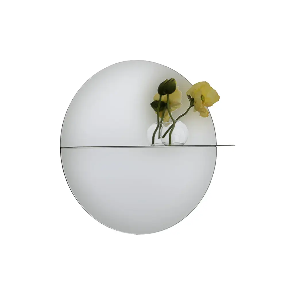 A circular mirror with a winsome accent shelf, Otto represents a collaboration between independent Swedish designers Anya Sebtion and Eva Lilja Löwenhielm. The wall-mounted series comes in a choice of 3 sizes with the powder-coated metal shelf proportioned to match. Choose from a trio of handsome finish combinations, with the structure in charcoal grey with a smoked mirror, bronze structure with a bronze mirror or khaki green structure with clear mirror glass.