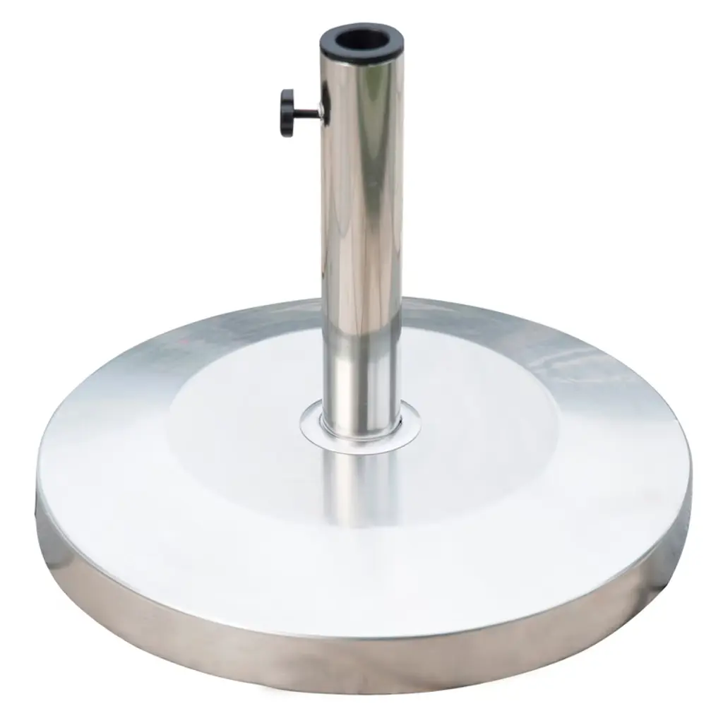 Outsunny 55lb Round Stainless Steel Outdoor Patio Umbrella Stand Base With Heavy Cement Bottom & Mirror Finish