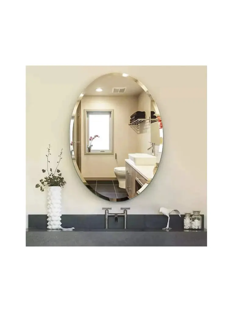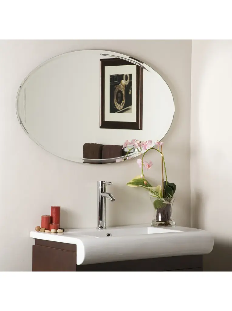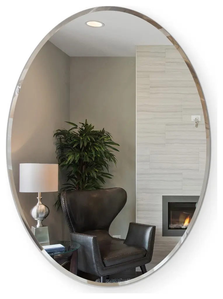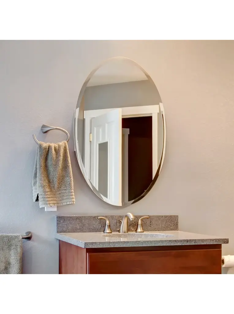24"x48" Oval shape Frameless Wall Mirror1" Beveled Polished EdgeVinyl Safety BackingThickness: 1/4 inch or 6 mmCan be hanged both vertical and HorizontalComes with Hooks attached to the backEasy Installation DIYUses: bathroom, kitchen, wall art, wall decor, living room, etcFab Glass and Mirror offers the best price and the highest quality glass and mirror products nationwide. Your satisfaction is 100% Guaranteed. We stock all listed items and ship from Oldsmar Florida. A quick and simple way to give your home a fresh look and a great makeover is to install a 24" x 36" Inch Oval Beveled Polish Frameless Wall Mirror. Available Sizes: 22" X 30" 22" X 39" 24" X 36" 24" X 48" Mirrors with Safety backing: So in case of the mirror breaks it will remain safe, and all broken pieces will stick together rather than fall off the wall. We Have High-Quality Oval Wall Mirrors An oval mirror is an exceptional shape for a room that needs that extra special something. It offers exquisite femininity and classic beauty. Our frameless oval mirror collection features quality craftsmanship, polished and beveled edges, and an unmistakable elegance. There is no right or wrong way to hang a small or large oval wall mirror. Hang one horizontally when the room features other horizontal elements like a picture window. Multiple oval mirrors hanging side by side or on adjacent walls is also a way to create impact. Oval mirrors are available in a variety of sizes and include hooks and installation information. An Oval Bathroom Mirror from Fab Glass and Mirror is just like artwork. Each oval bathroom mirror is crafted with the utmost attention to detail. Exquisitely beveled and polished, each mirror includes hooks and is ready to install. Our oval bathroom mirror collection will create an eye-catching focal point in this special, personal space. You'll see from the moment you hang it on the wall, the wonderful difference it makes. The room will appear larger, more distinct, and more attractive. Light will instantly bounce throughout the room and you'll wonder how you ever started your day without your oval bathroom mirror. Mirrors offer stylish beauty and function. They are like moveable windows that we can display to our heart's content. Our frameless oval vanity mirrors are beveled and polished so you can get ready for your day polished and ready for the day, or night ahead. Their sleek design works in every decor style so whether you are classic and traditional or contemporary and eclectic, a Fab Glass and Mirror Oval Vanity Mirror will instantly fit into your lifestyle.