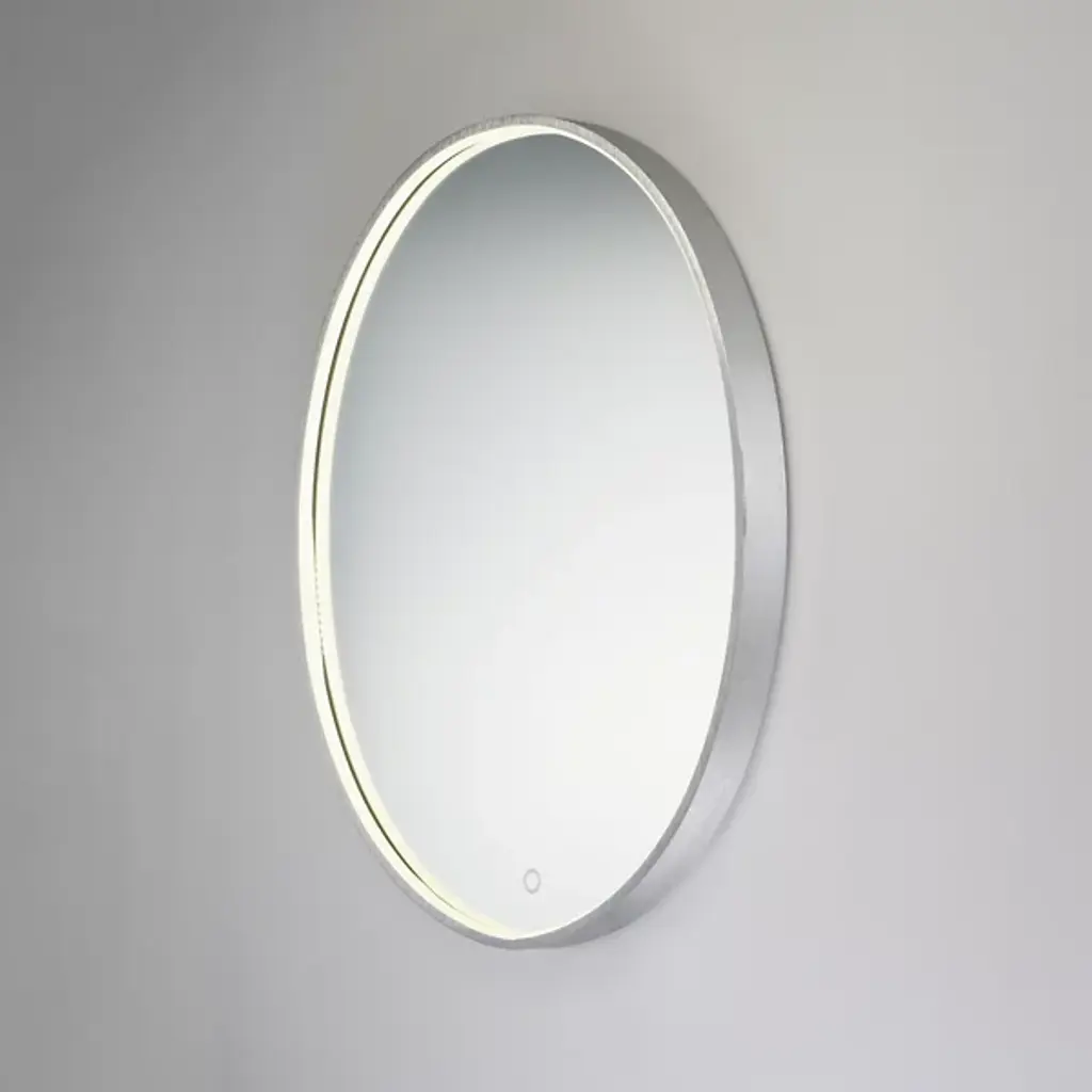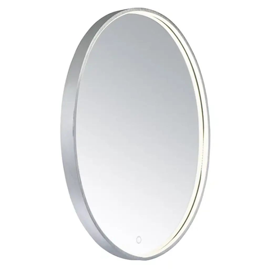 Get a new perspective on things with the Oval E42012 LED Mirror by ET2 Lighting. A smooth-surfaced mirror set inside a rim of stainless steel, adjustable LEDs are set into the inner edge of the metal, screened by clear glass to reduce ambient and reflective glare from the lamping into a softer tone, still great for daily tasks. The LED Oval Mirror is damp-listed for bathroom use, ADA compliant, and sturdy enough for years of use.