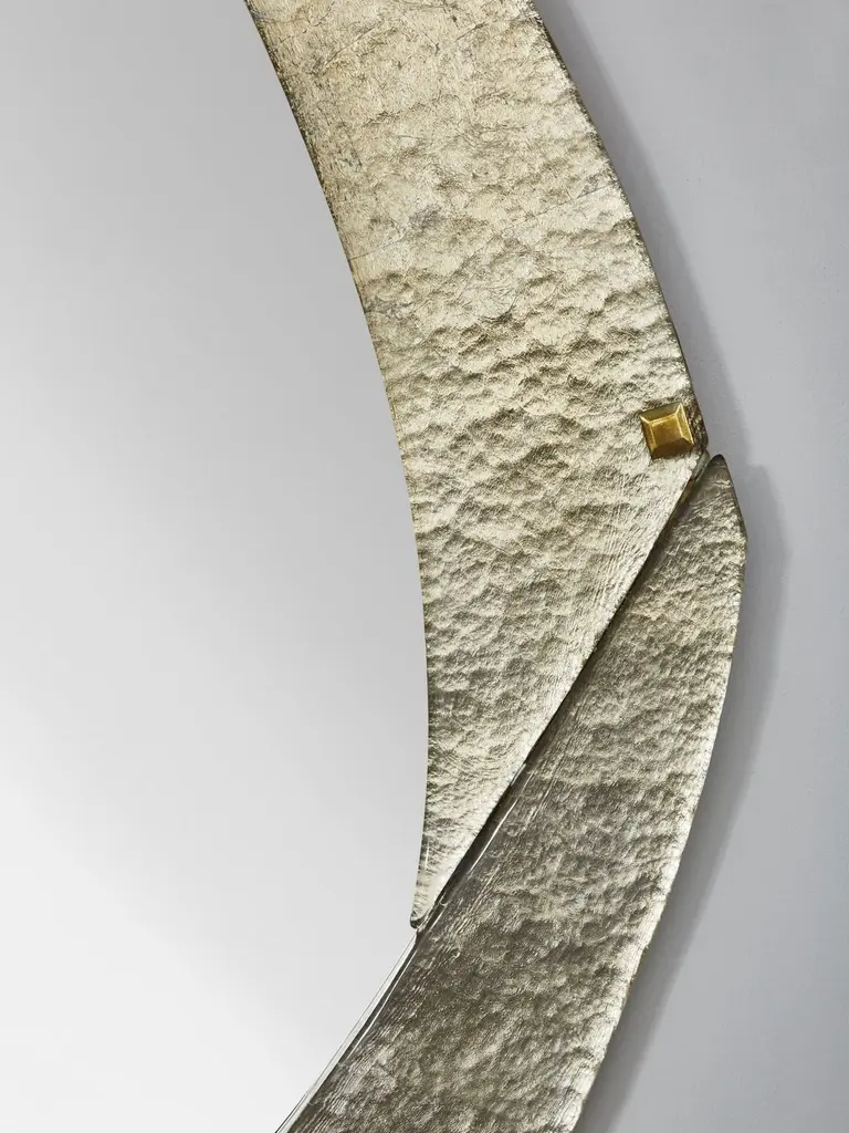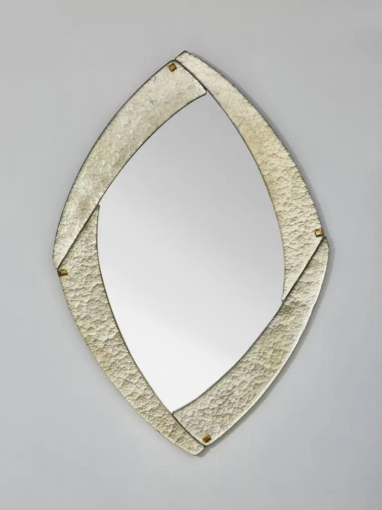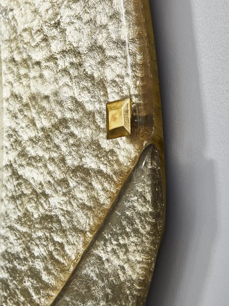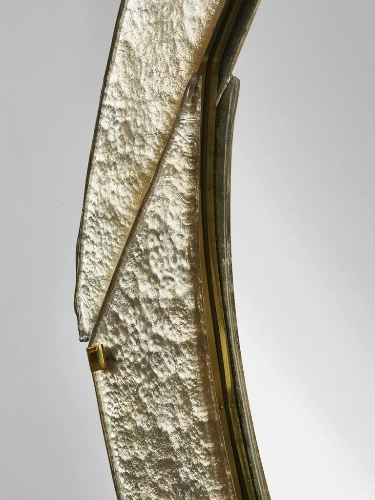 Oval mirror with frame in Murano glass gilt with white gold leaf frame.Creation by Studio Glustin.