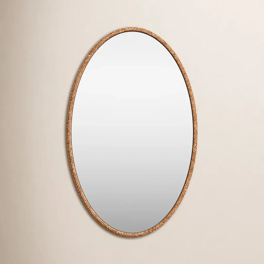 Overall 23 inches wide x 35 inches high x 2 inches thick. Glass only 19 inches wide x 31 inches high. Frame 2 inches wide.Hand crafted from naturally grown rattan.Clean frame with damp cloth and glass wih any glass cleaner.