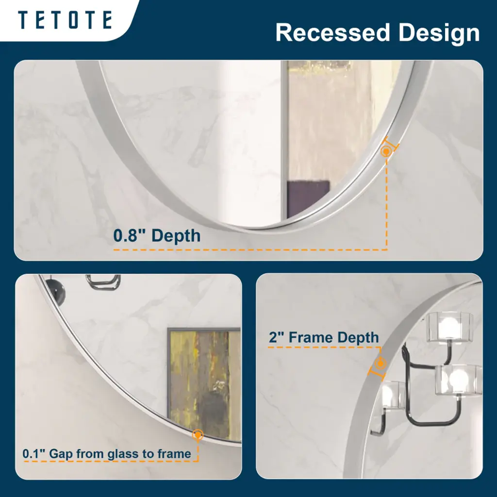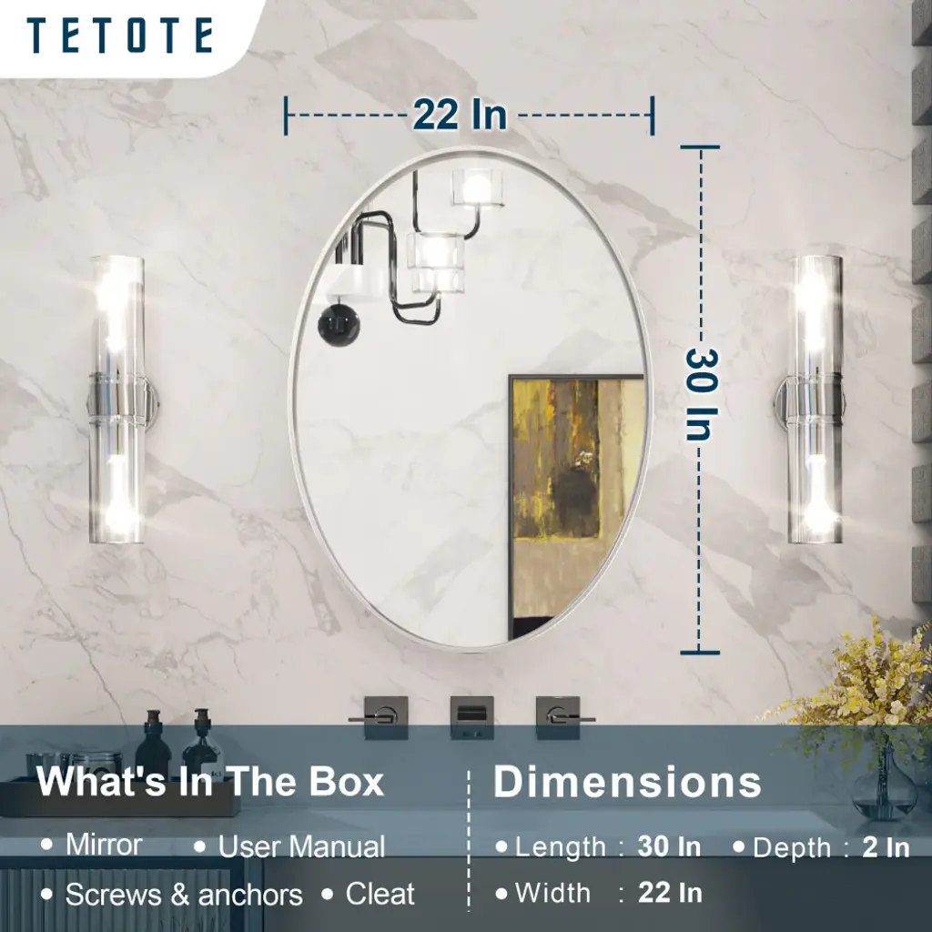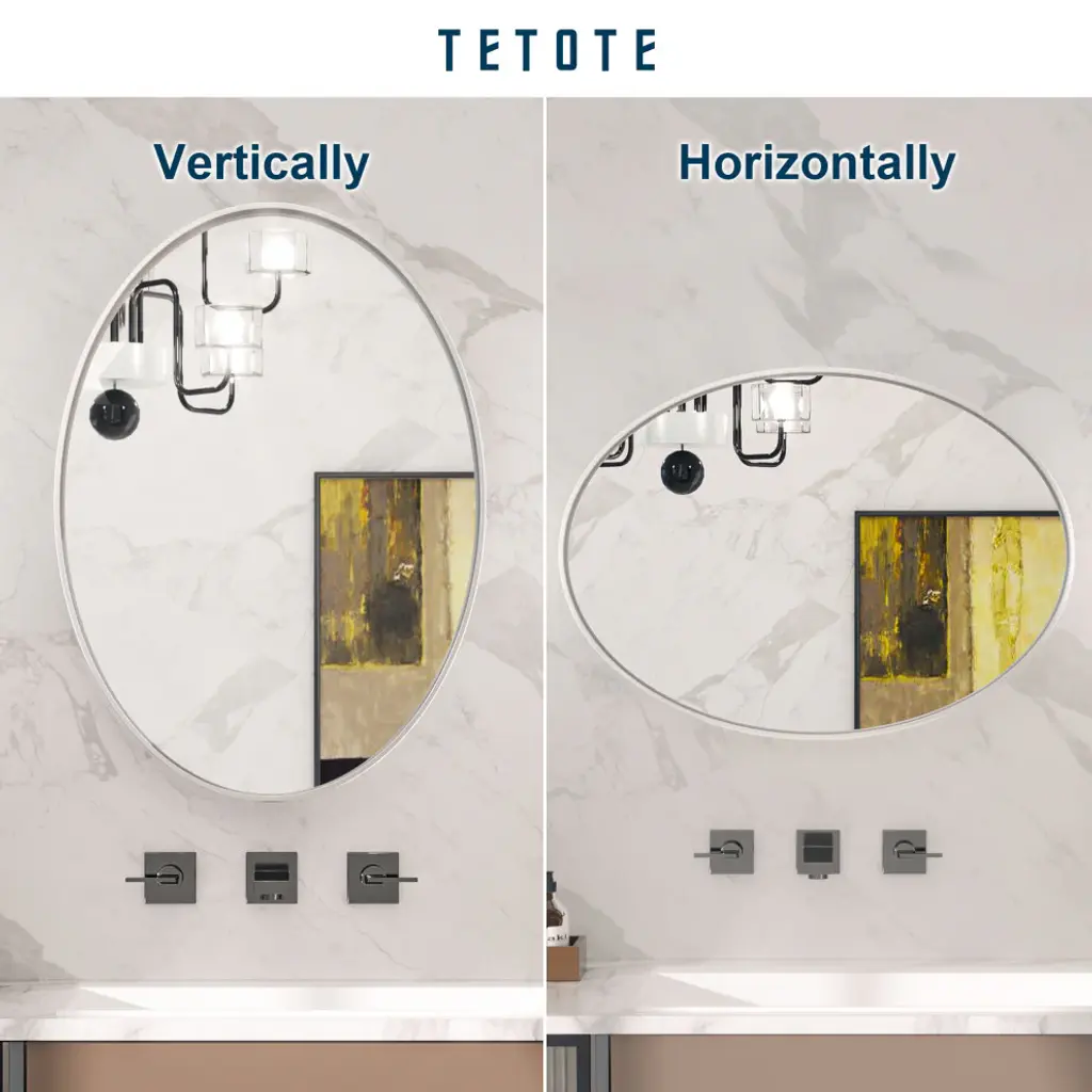 - Practical and decorative framed mirror: Oval bathroom mirror with 2 inch depth metal frame will add farmhouse design appeal. Besides apply in bathroom or bedroom as a practical vanity mirror, thanks to its eye-catching matte finish frame, it is also a good option as a modern decorative piece. Meets needs of any modern style decoration of living room, entryway and fireplace- Durable Metal Frame: Aluminum alloy frame of the oval wall mirror adopts straight grain brushed process to enrich the edge of this bathroom mirror with metallic luster and texture. Anodizing process makes the metal frame waterproof and anti-rust. Durable and non-deformed shape- Shatterproof HD Glass: A wonderful bathroom mirror is always combined with several craftwork layers. 4mm environment friendly copper free glass with silver plated layer provides HD refection without any distortion to the wall mounted oval mirror. Shatterproof film is the important layer to keep people safe once the mirror is broken in accident. Besides, anti-corrosion backboard will strengthen the glass for safety