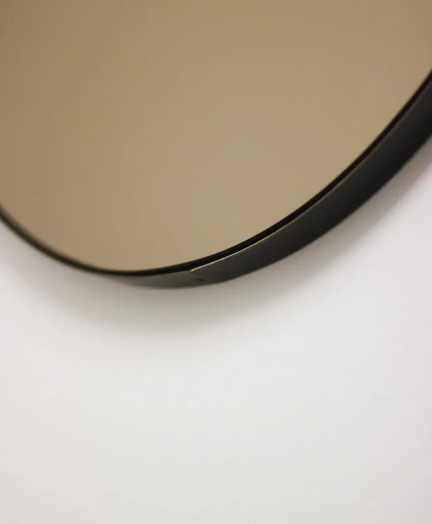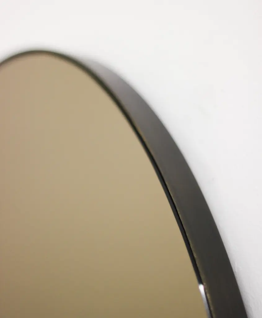 Contemporary oval bronze tinted mirror with an elegant bronze patina brass frame. Designed and made in London, UK. This mirror is fully customisable. Our mirrors are designed with an integrated French cleat (split batten) system that ensures the mirror is securely mounted flush with the wall.The images show a medium size, measuring 37cm x 56cm x 1.8cm / 14.6" x 22" x 0.71"The Neska™ signature bronze patina finish of our frames is a highly skilled and handcrafted process. Carried out by our talented craftsmen, this artistic finish is created from the base metal itself to achieve the natural look of aged brass. This makes the finish of each frame original and unique as no two frames can be identical. Any sample or images provided to obtain your approval on the desired finish or on our website or any other promotional material are therefore for guidance only.Shipped safely and insured worldwide. All our mirrors are made on demand. Fabrication lead time for this particular mirror is approximately 4 to 5 weeks. Our mirrors are always shipped by courier express. Shipping via courier express typically requires 1 to 2 days to the UK, or 2 to 7 days outside the UK depending on the destination.Available sizes:Small: 27cm x 68cm x 1.8cm / 10.6" x 26.8" x 0.71"Medium: 37cm x 56cm x 1.8cm / 14.6" x 22" x 0.71"Large: 46cm x 71cm x 1.8cm / 18.1" x 28" x 0.71"Extra Large: 48cm x 97cm x 1.8cm / 18.9" x 38.2" x 0.71"or any bespoke dimensions.Available options:- mirror tint: silver, bronze, black, rose gold / peach or blue - frame finish: brushed brass, polished brass, bronze patina, black - bevelling - back-illumination creating a halo effect - demister padPlease contact us for a quote for any bespoke specifications or added options.ORDERS OF MULTIPLE MIRRORS OF THE SAME TYPE: Please contact us to receive a Packing and Shipping quote when ordering multiple mirrors of the same type. An order for multiple mirrors of the same type may not be accepted without extra packing and shipping fees. Thank you.