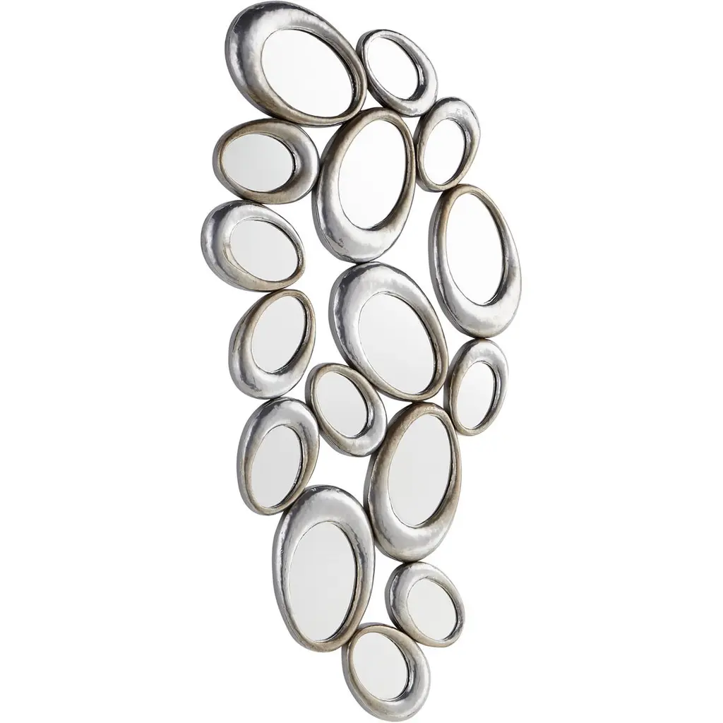 Whimsical and sophisticated, this posh wall mirror features silver geometric ovals in an abstract arrangement. This modern twist on wall art will add some depth and character to home living space or lined down the hall of any commercial setting. Display in multiples to create your own personal art installation.