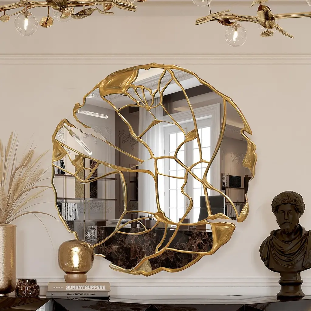 Mirror oversized gold with solid mahogany lacquered woodin gold finish. With hand-cutted clear mirror glass.Also available in Lacquered black finish with a high gloss varnish,on request.