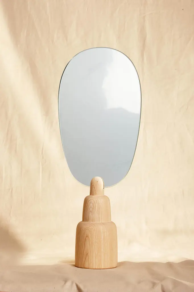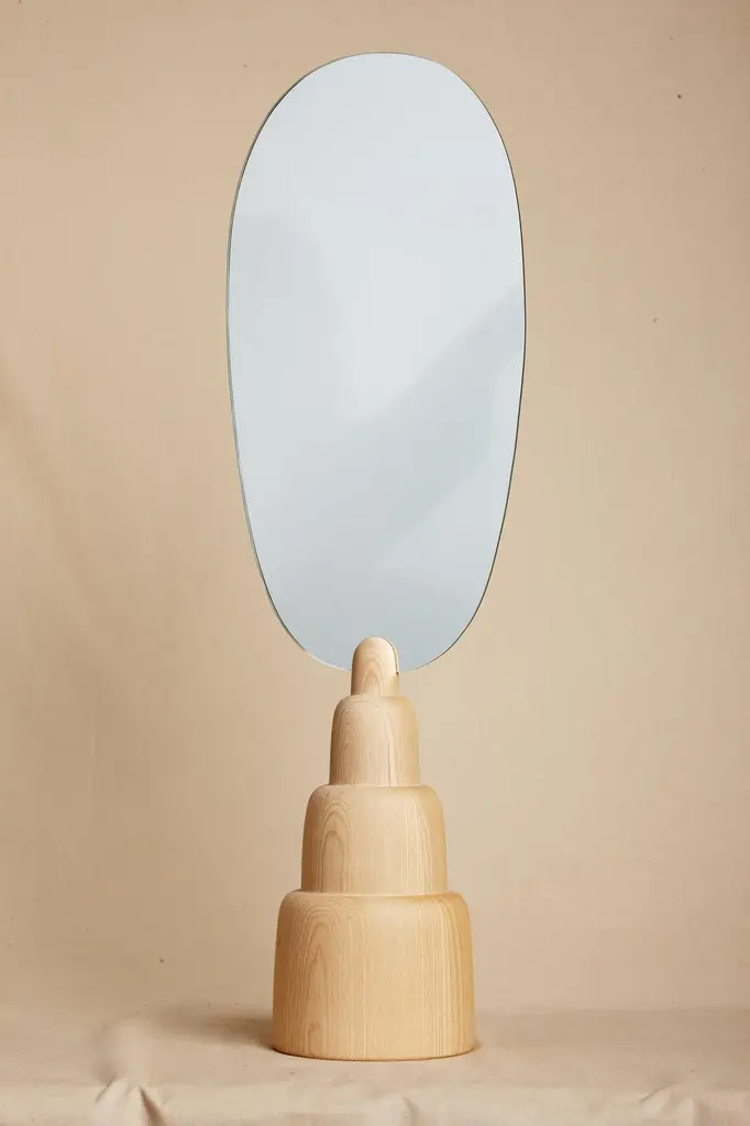 Ovoid Mirror by Ebba LindgrenDimensions: D 14 x W 21 x H 67 cm.Materials: Ash wood with hard-wax oil, mirror.Ebba LindgrenIs an internationally renowned artist/designer based in Malmö. Lindgren's practice is artistic and concept-driven. By allowing grand ideas to flourish even within tight constraints, she has created an approach to design that is smart, desire-driven, and slightly off-kilter. She works with overlooked details to craft a captivating whole that is both raw and poetic, artificial and genuine. Apart from designing objects and spaces, she also works on projects reshaping value chains and material processes, and integrating AI in the design process. And once in a while, she curates art exhibitions. Lindgren holds an MFA in industrial design from Lund University and has studied art at the Emily Carr School of Art in Vancouver.