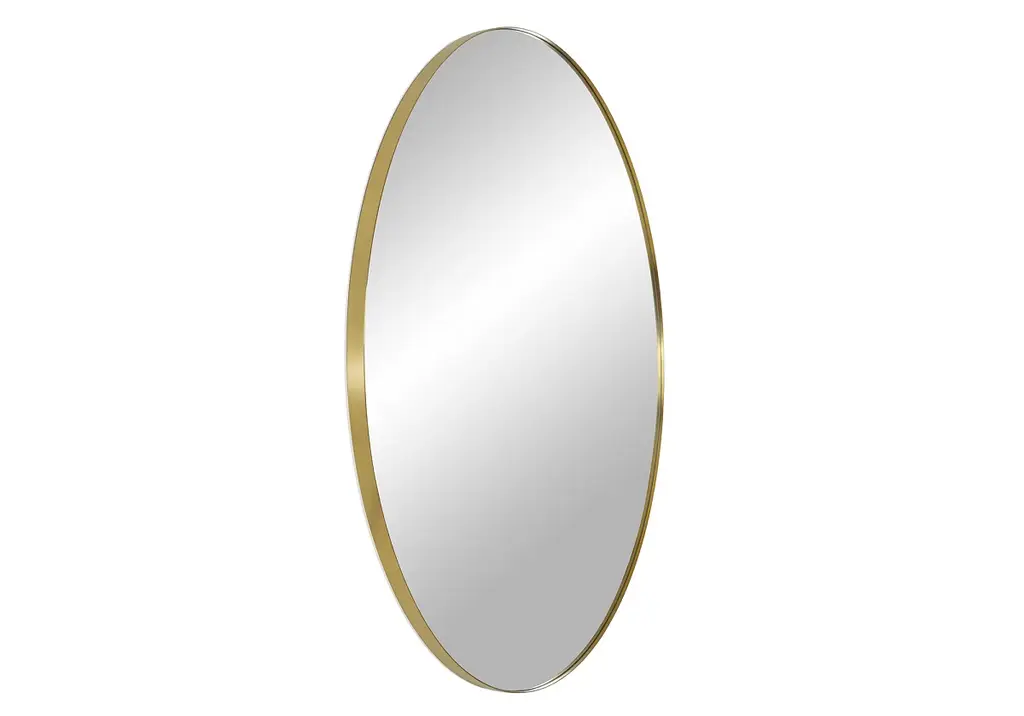 Final Sale The Oxford is a tasteful addition with its spacious form and elegant design. It features a wide circle mirror with a thin, brass frame for a look that is sophisticated and dimensional.