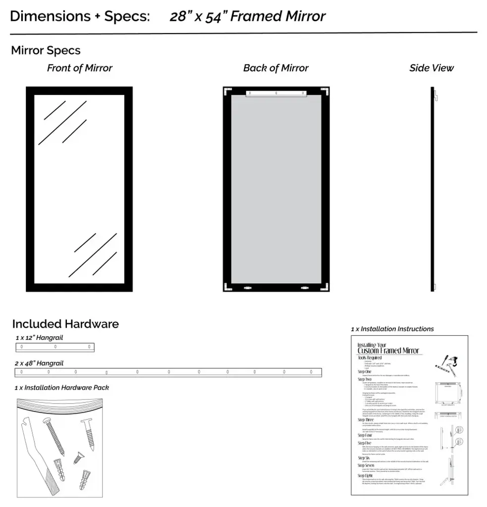 Dramatic lines and a textured finish combine to make the Oxfordshire a bold contemporary frame choice for your mirror. The deep-set details give it depth to ensure this framed mirror is a standout.Hangrail for installation will be applied on the width of the frame. All assembly hardware and instructions will be included. Additional hangrails are included if the opposite orientation is desired for installation. The dimensions displayed are the final outside dimensions of the frame, including the mirror. CATII safety backing applied on all mirrors. Approved for high-moisture areas such as bathrooms.