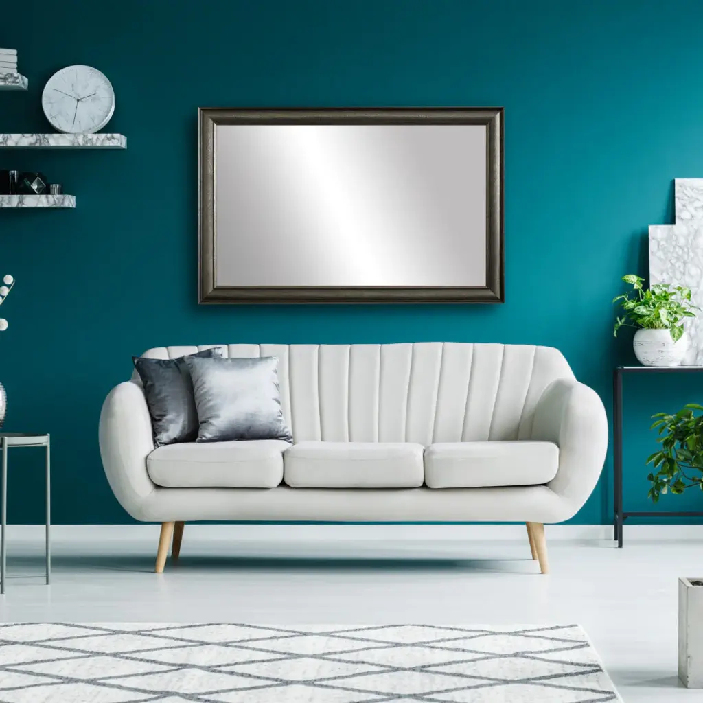 Dramatic lines and a textured finish combine to make the Oxfordshire a bold contemporary frame choice for your mirror. The deep-set details give it depth to ensure this framed mirror is a standout.Hangrail for installation will be applied on the width of the frame. All assembly hardware and instructions will be included. Additional hangrails are included if the opposite orientation is desired for installation. The dimensions displayed are the final outside dimensions of the frame, including the mirror. CATII safety backing applied on all mirrors. Approved for high-moisture areas such as bathrooms.