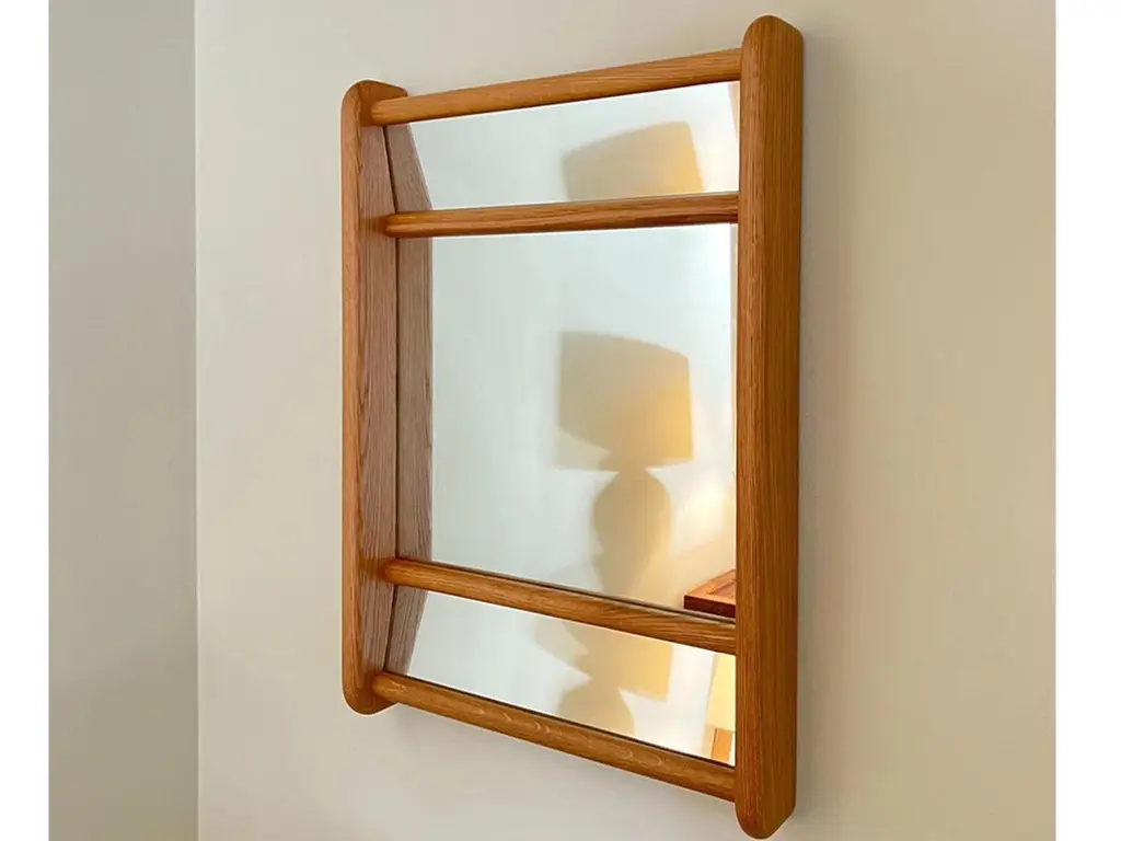 The Padaria mirror is named after its inspiration: the mirrored display cases found in Rio de Janeiro's bakeries. The angled mirrors reflect both things above and below the line of sight. The Lawson-Fenning Collection is designed and handmade in Los Angeles, California.