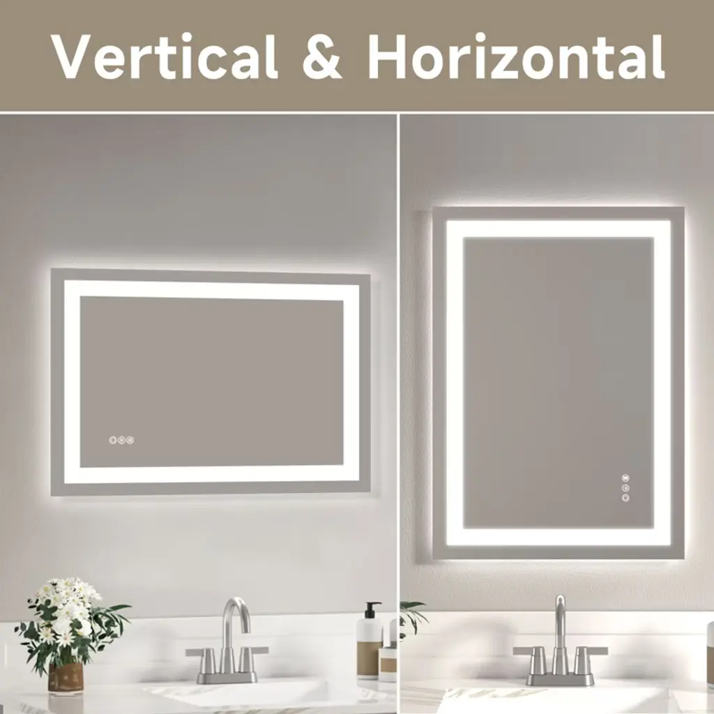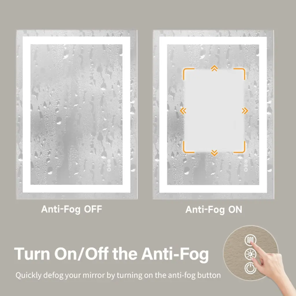 Paged Rectangular Bathroom Mirror, 20"x28" Led Vanity Mirror, Anti-fog Makeup Mirror With 3 Adjustable Color For Bathroom, Bedroom, Transparent