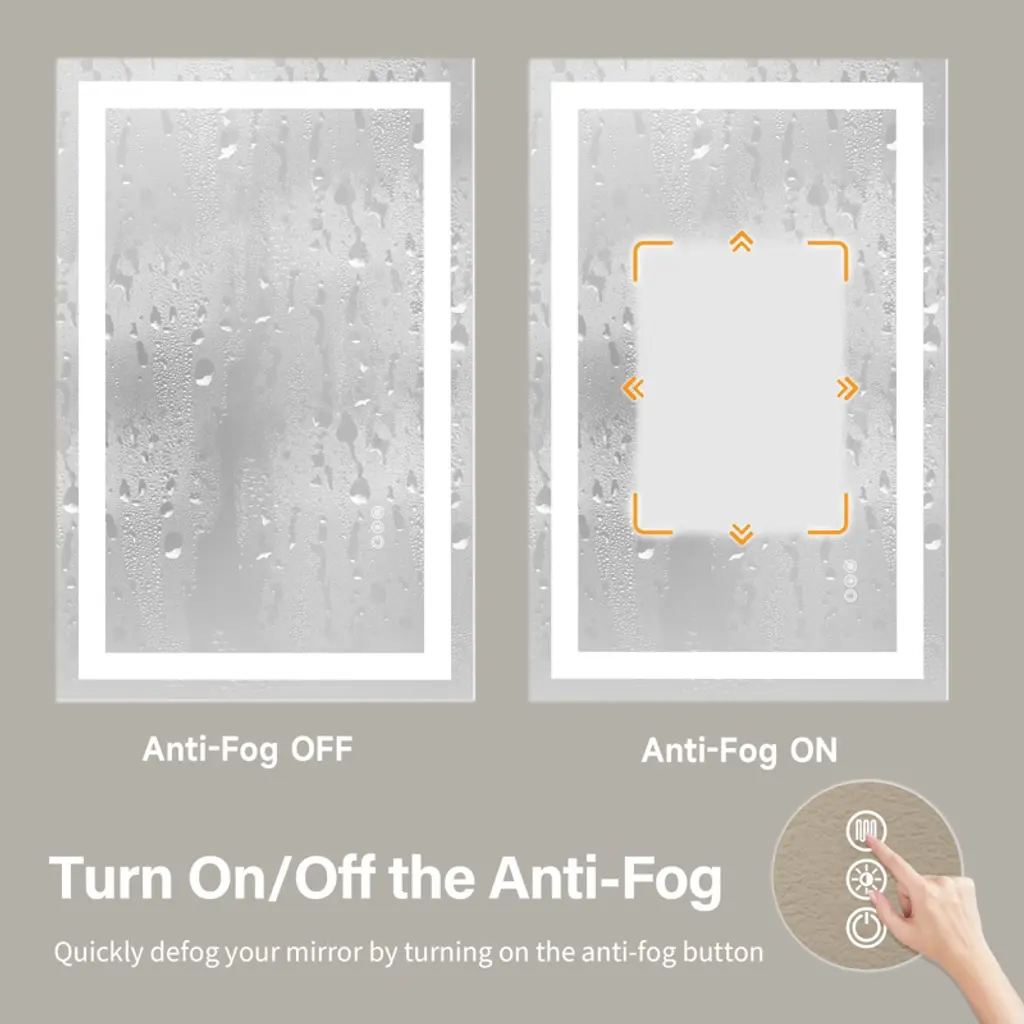 Paged Rectangular Bathroom Mirror, 24"x36" Led Vanity Mirror, Anti-fog Makeup Mirror With 3 Adjustable Color For Bathroom, Bedroom, Transparent