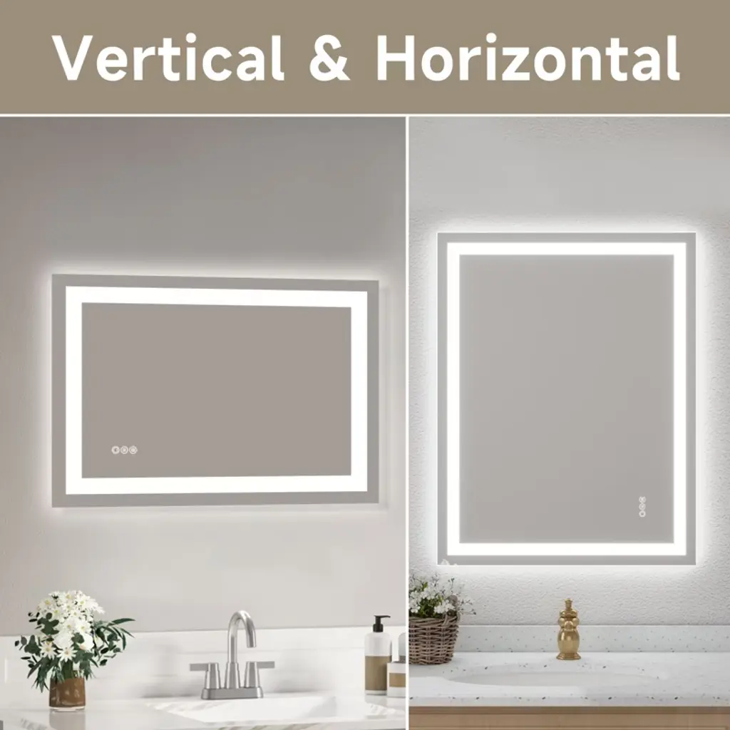 Paged Rectangular Bathroom Mirror, 28"x36" Led Vanity Mirror, Anti-fog Makeup Mirror With 3 Adjustable Color For Bathroom, Bedroom, Transparent