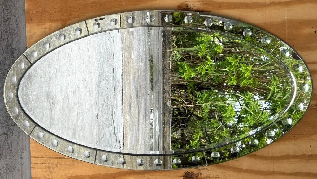 Pair Jonathan Adler Venetian Style Optic Convex Etched And Beveled Oval Mirrors*
