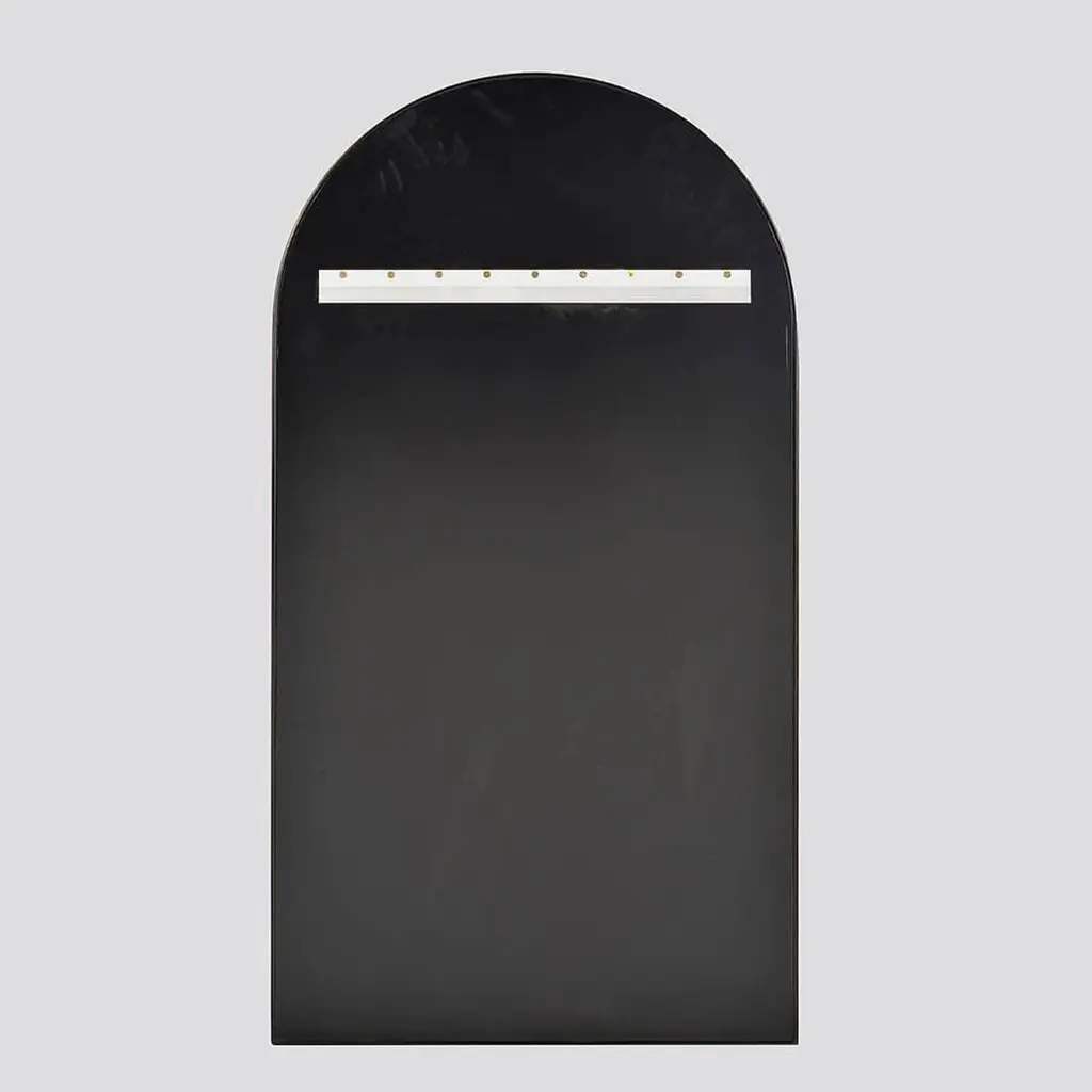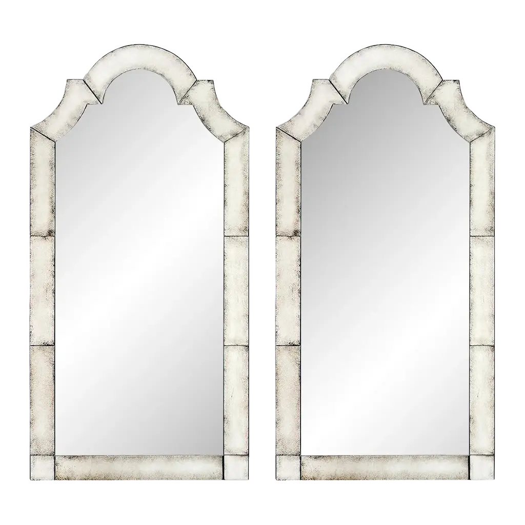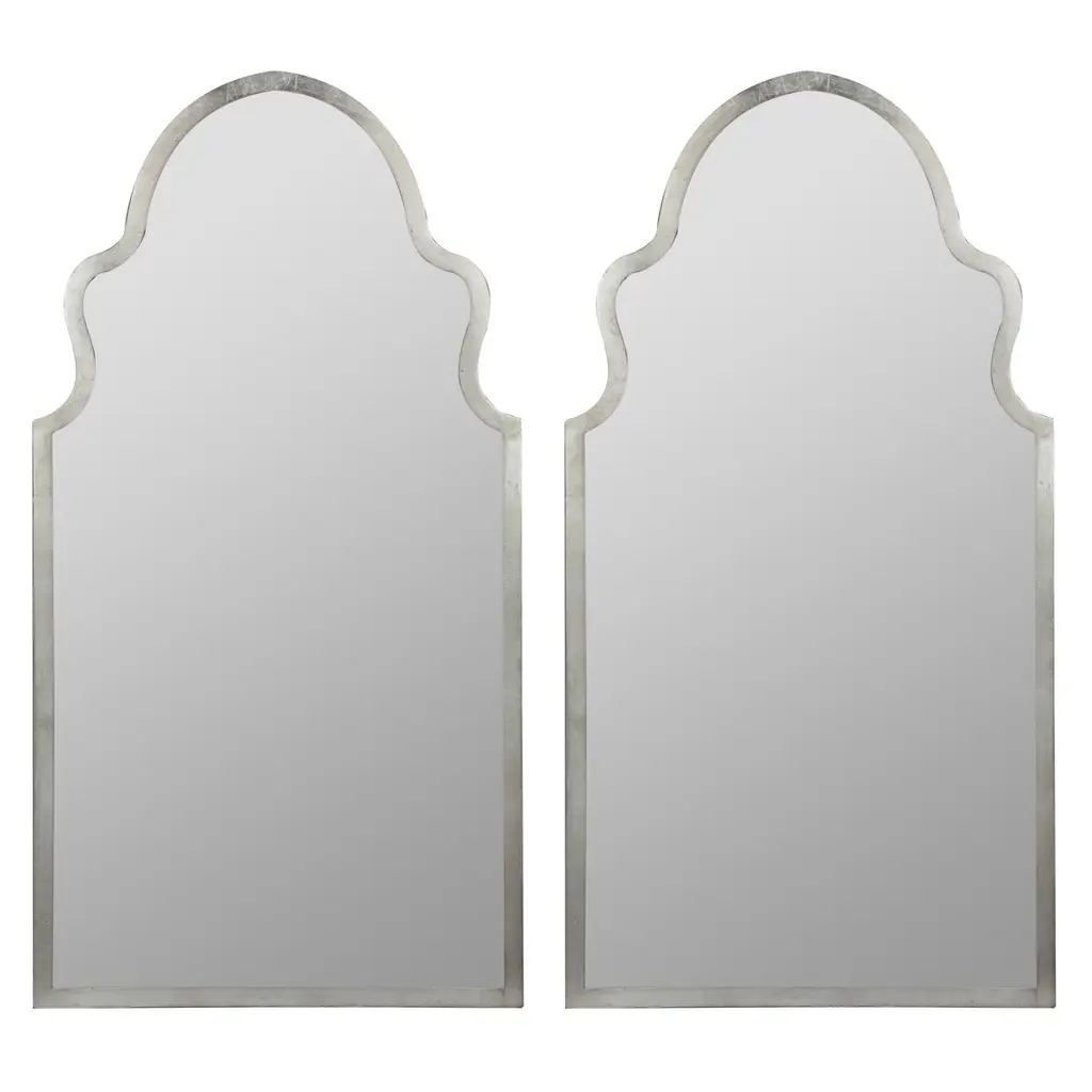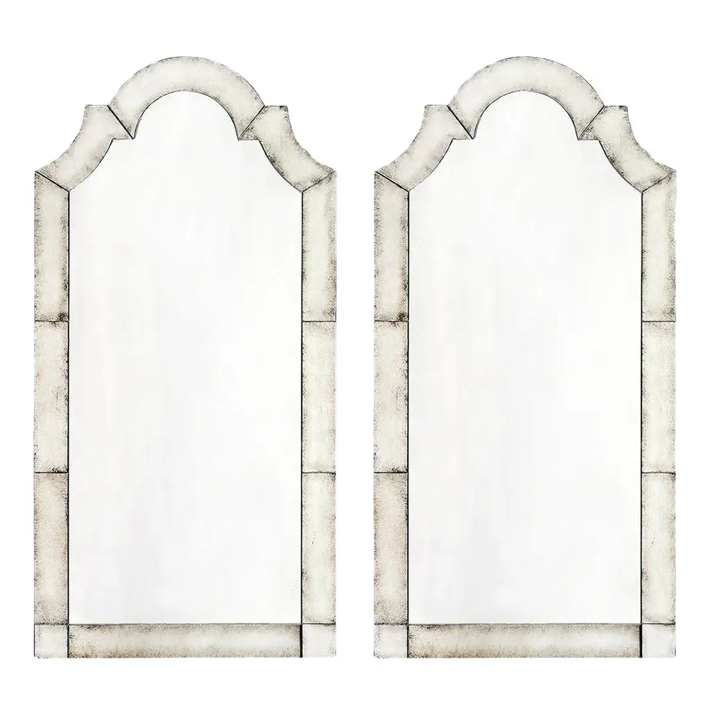 A pair of modern arch top gilt mirrors, with a gilt metal frame and an antiqued mirror plate.Dimensions: 22" W x 1" D x 42" H.