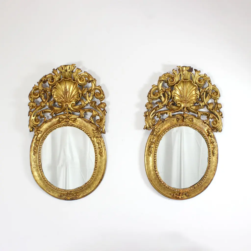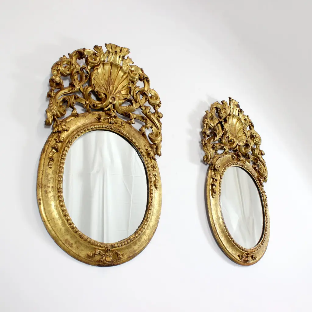 Pair of carved and gilded wooden sacristy mirrors - 18th century - SpainDimensions: 105 x 60 x 5 cm