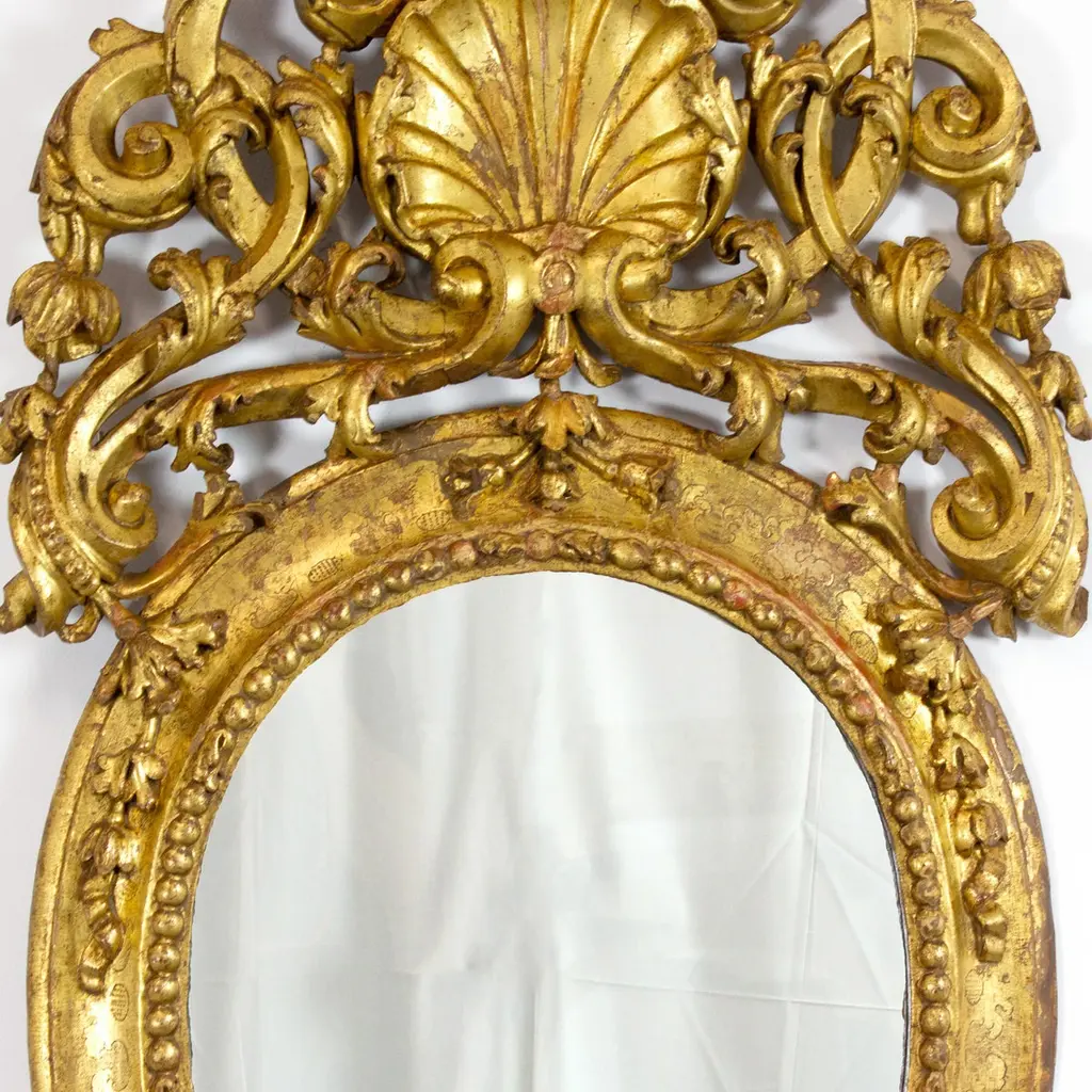 Pair Of Carved And Gilded Wooden Sacristy Mirrors - 18th Century - Spain