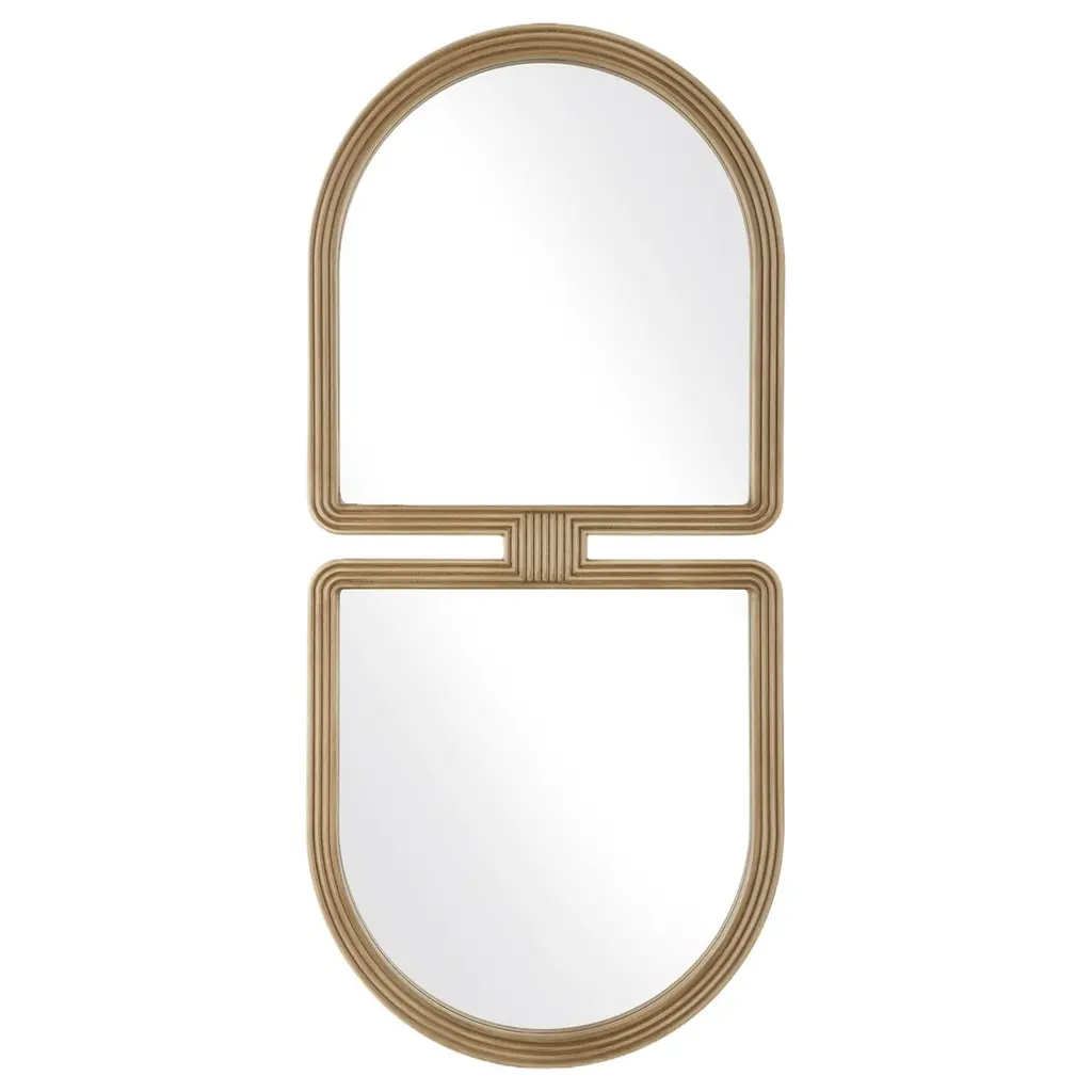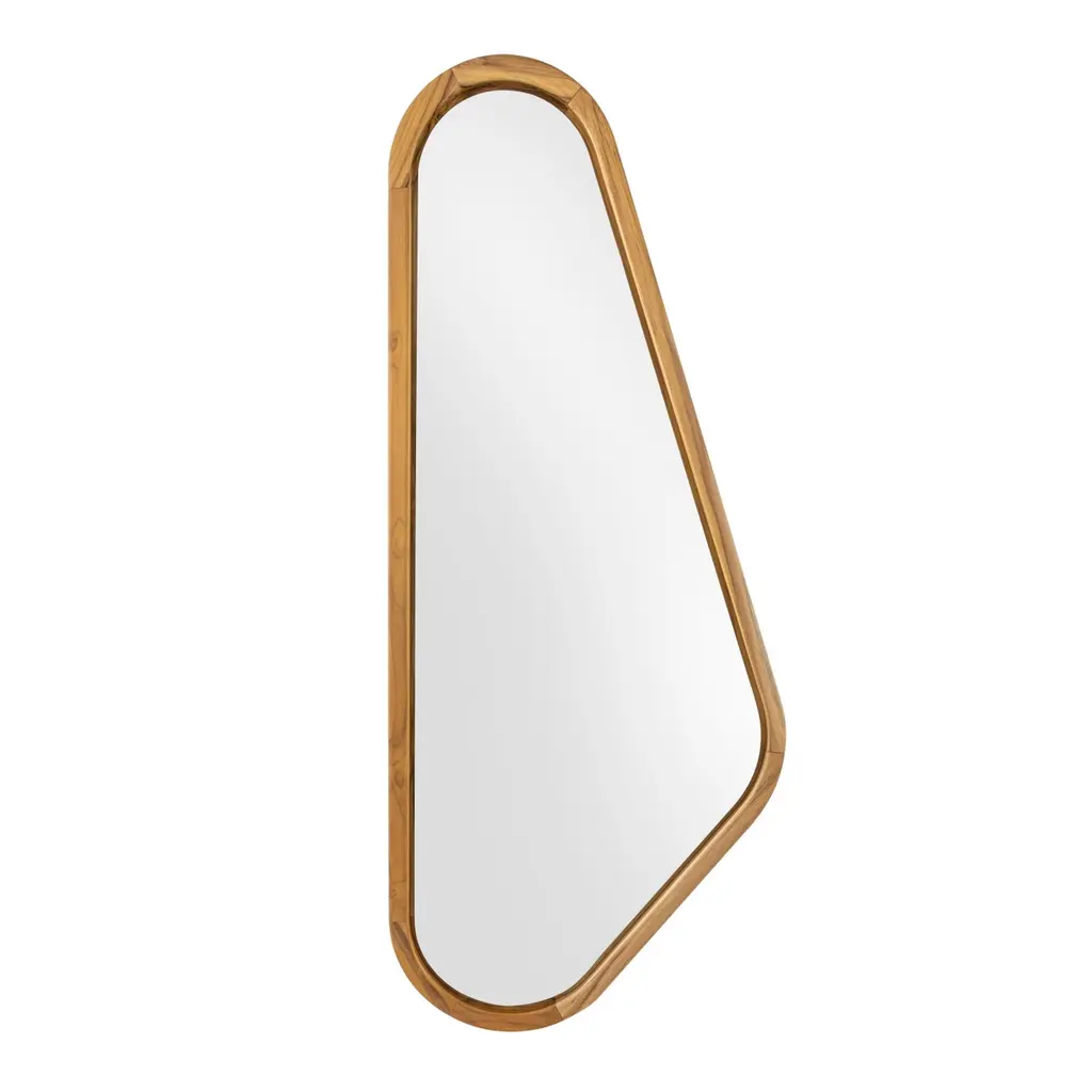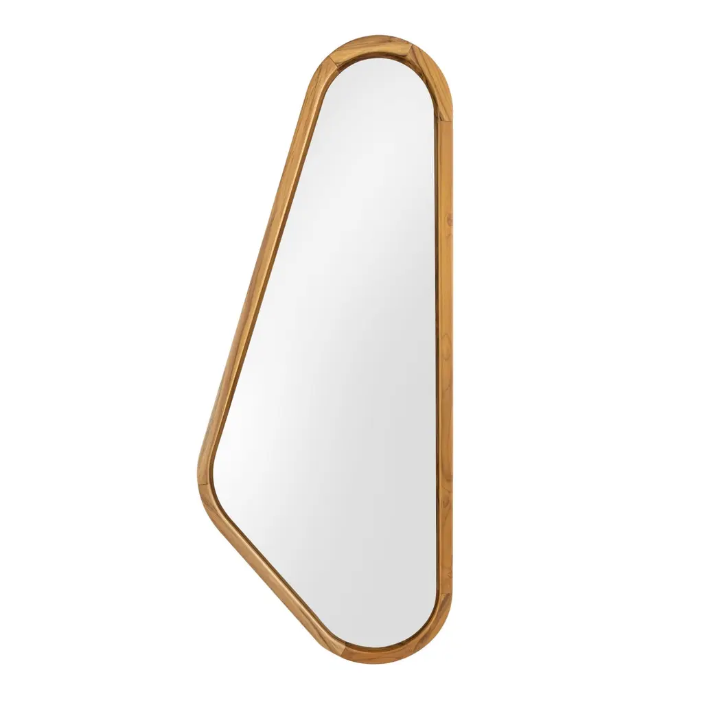 A pair of Ali mirrors designed by Studio + A! with teak frame. Bring a touch of natural elegance and artistic inspiration into your home with the Ali mirrors, a striking pair crafted in teak. Designed by Studio + A!, the Ali mirrors take their name from the Italian word for "wings," a concept brought to life through their graceful, dynamic design. Together, the two mirrors create a wing-like effect, imbuing any space with a sense of movement, balance, and freedom.Each mirror features a frame of rich teak wood paired with an MDF backing, combining beauty, durability, and sustainability. Please note that teak has natural variations, therefore each piece will be very unique. The teak wood will receive a teak touch finish that is matte and velvety, maintaining the authentic wood feel.These mirrors are ideal for modern and contemporary interiors, offering versatile placement options—use them as a statement piece in an entryway, above a console table, or as part of a curated gallery wall. Their clean lines and organic design also make them a beautiful addition to bedrooms, creating a tranquil yet visually dynamic effect.Perfect for pairing or displaying individually, the Ali mirrors elevate any room while reflecting natural light to enhance the sense of space. Designed with both form and function in mind, they showcase meticulous craftsmanship while aligning with eco-conscious values. Whether hung side by side or creatively positioned, these mirrors provide timeless style, making them a versatile investment for home or commercial spaces. Minimal assembly required for installation.