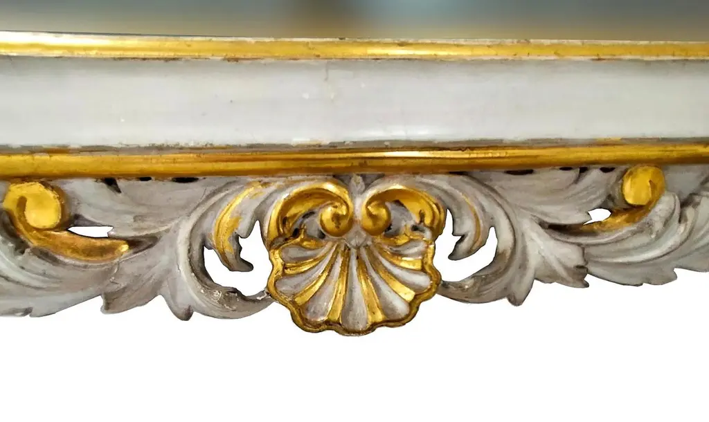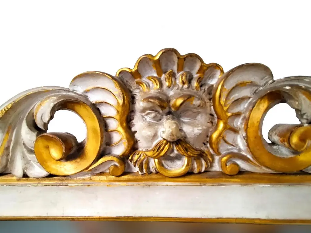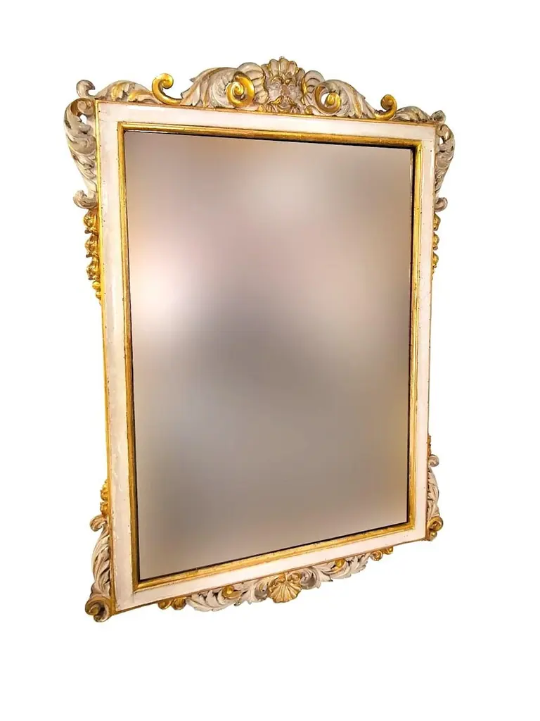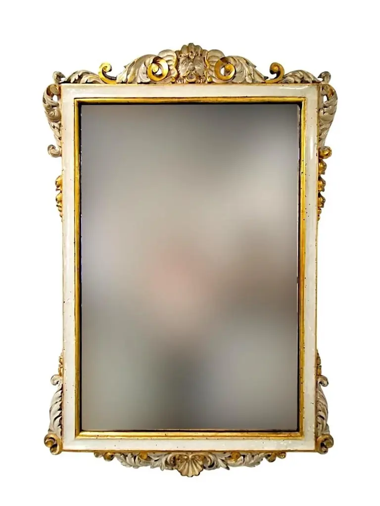 Pair of mirrors carved and gilt frames 13th century.Epoch: Second half of the 18th centuryElegant pair of ivory lacquered mirror frames with carved and gilded details.In the cymatium a beautiful carved mask and in the lower part a classic shell motif.Essential-looking frames , of great quality and taste.Condition: Very good overall condition, never underwent restoration.Origin: Emilia RomagnaMeasurements: height 110 cm, width 75 cmCan also be sold individuallyCod. Art. 10488 / 10489(D,SM) R,SMx1