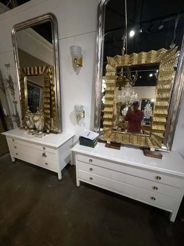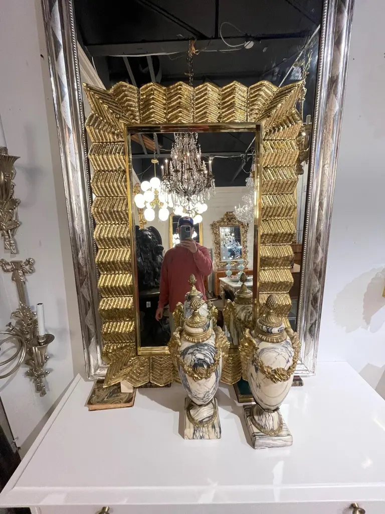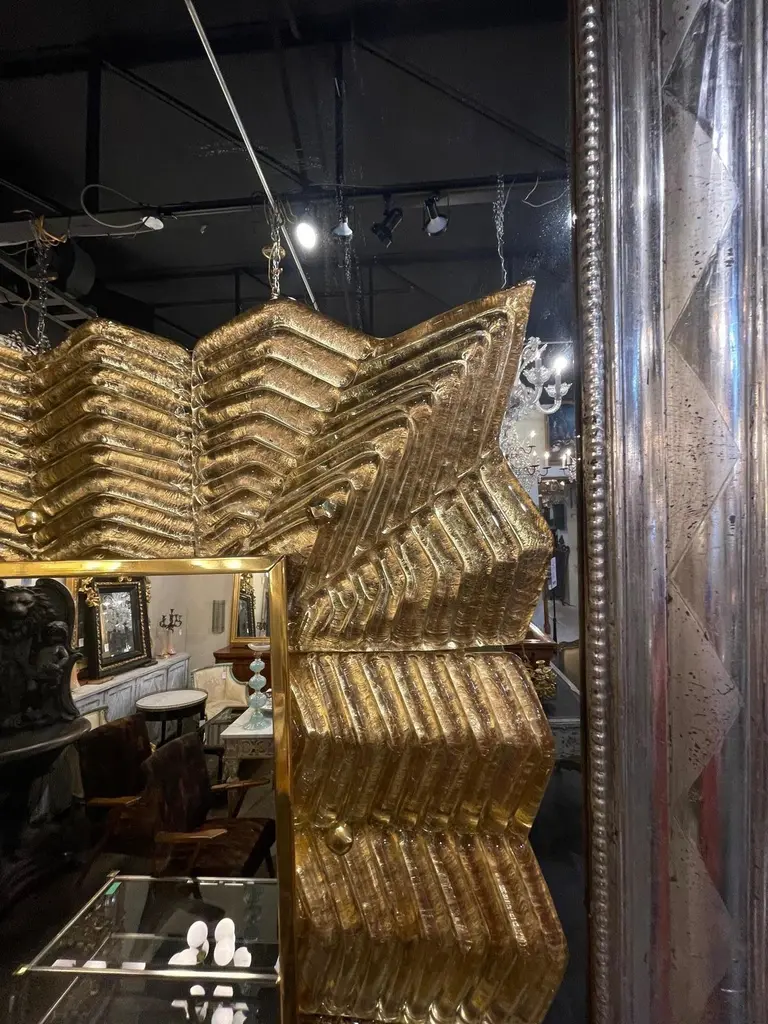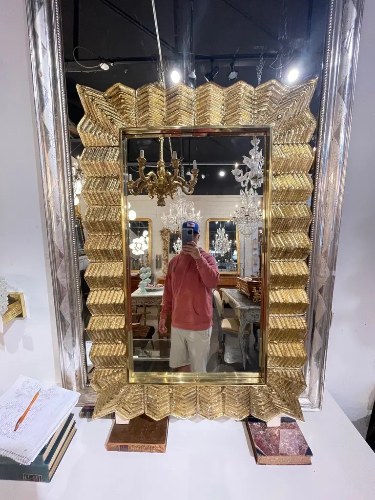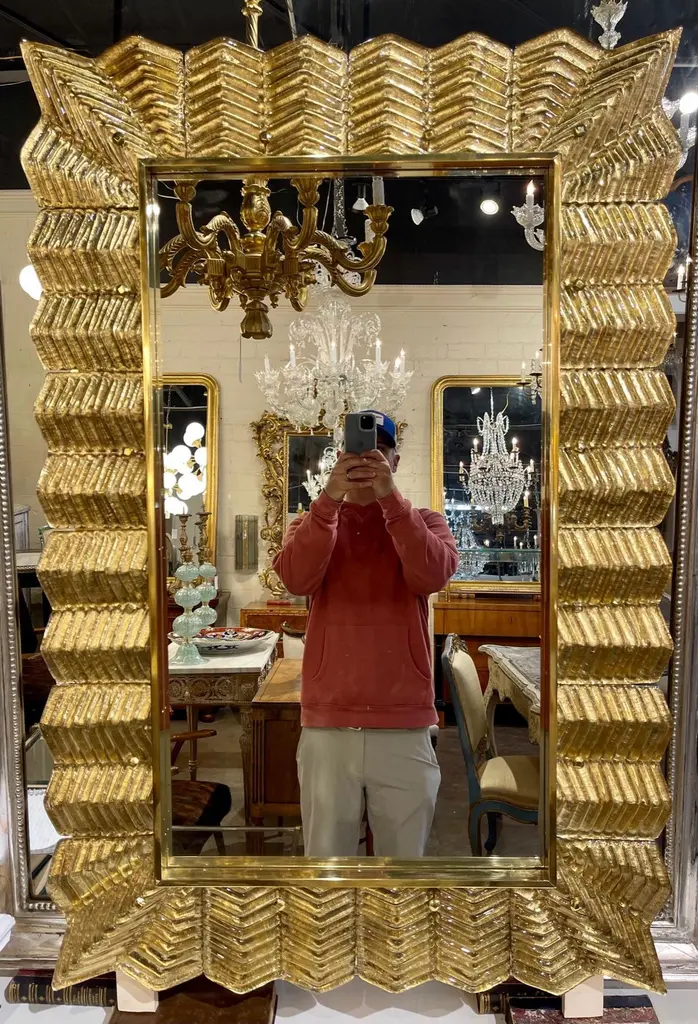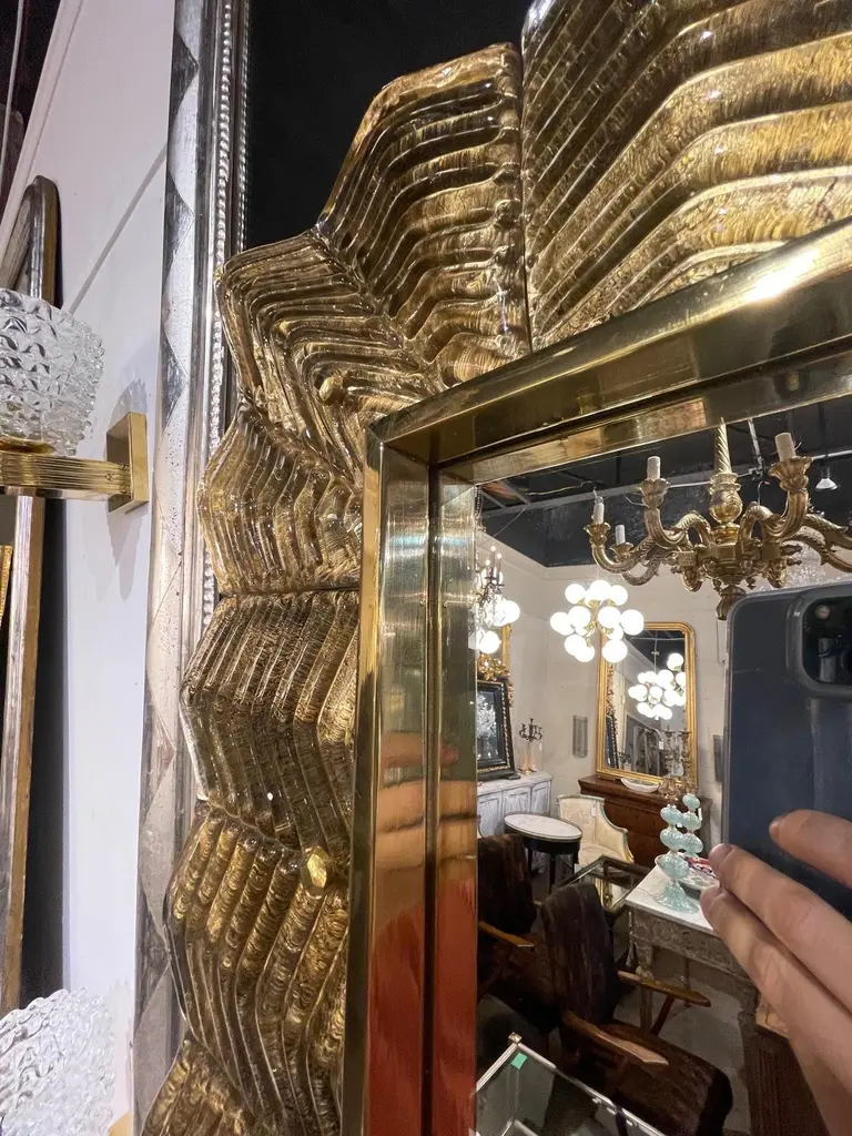 Pair of modern Murano gold leaf glass and brass mirrors. Circa 2000. A favorite of top designers. These are available in other custom colors. Note: sold individually.