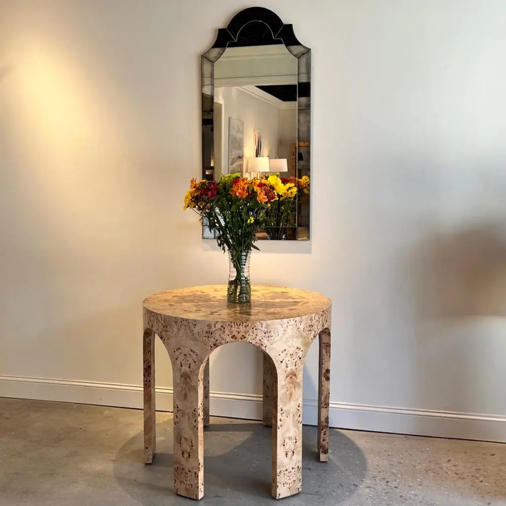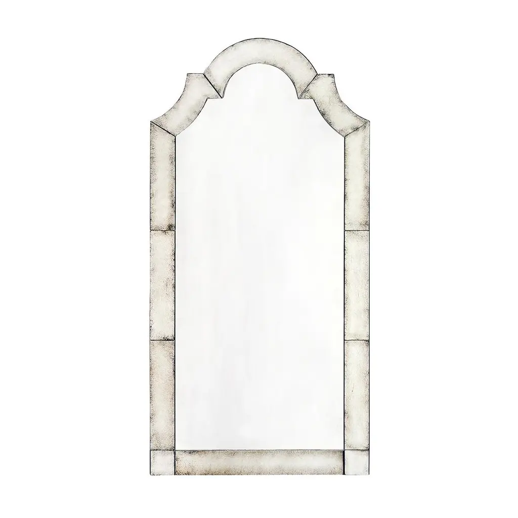 eaturing a shaped tombstone form, this mirror showcases a border glass frame and antiqued mirror glass for a timeless appeal. Its delicately distressed finish and graceful design capture the essence of classic luxury, making it the perfect addition to living rooms, entryways, or bedrooms.The combination of its antique charm and unique silhouette creates a focal point that enhances both traditional and modern interiors. Elevate your space with this exquisite English nspired piece that reflects light, style, and sophistication.Dimensions: 24" W x 48" H
