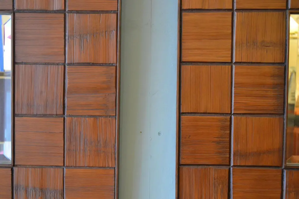 Pair Of Square Hand Carved Walnut Relief Mirrors, 1960s Italy
