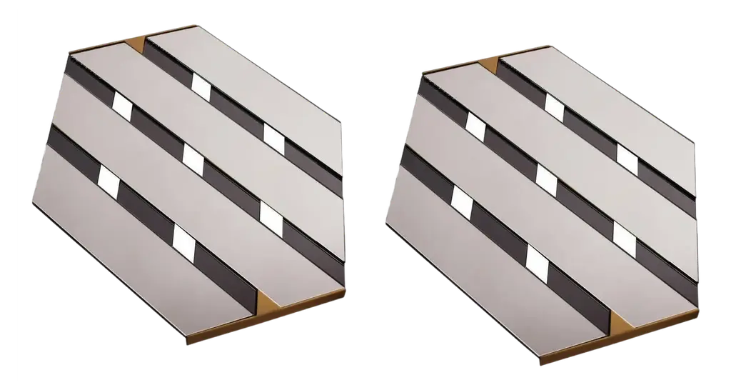 Pair of Tresse mirrors by Mason EditionsDimensions: 15 x 15 x 31 cmMaterials: Glass and metalDiagonal bands of reflecting surface, which overlap in an elegant optical effect with as many bands of colored mirror: this hexagonal mirror recalls the most Classic of bon ton hairstyles.Mason Editions is an Italian company specialized in the production of design furniture, lighting solutions, and accent pieces. Born from the lifelong passion for lighting and entrepreneurial spirit of Fabio and his partner Silvia, Mason Editions places itself halfway between fine art and exquisite craftsmanship. A collection of lighting, design objects, and furnishing accessories, signed by artists Serena Confalonieri, Martina Bartoli, and Matteo Fiorini, head of the creative direction.Mason Editions comes from the experience of an Italian lighting company placed in the Veneto region.This new brand of furniture elements was born from the meeting between the entrepreneur Fabio Mason and three international designers who designed the first collection for a sophisticated public. Therefore the collection wants to be eclectic and timeless.The material contrast and fresh design, with essential shapes, mark the mason editions collection.In conclusion, the elegant Italian sign highlights proposals suitable for all environments.Mason editions is a set of experiences, artisans, and productive know-how that creates a capable system.
