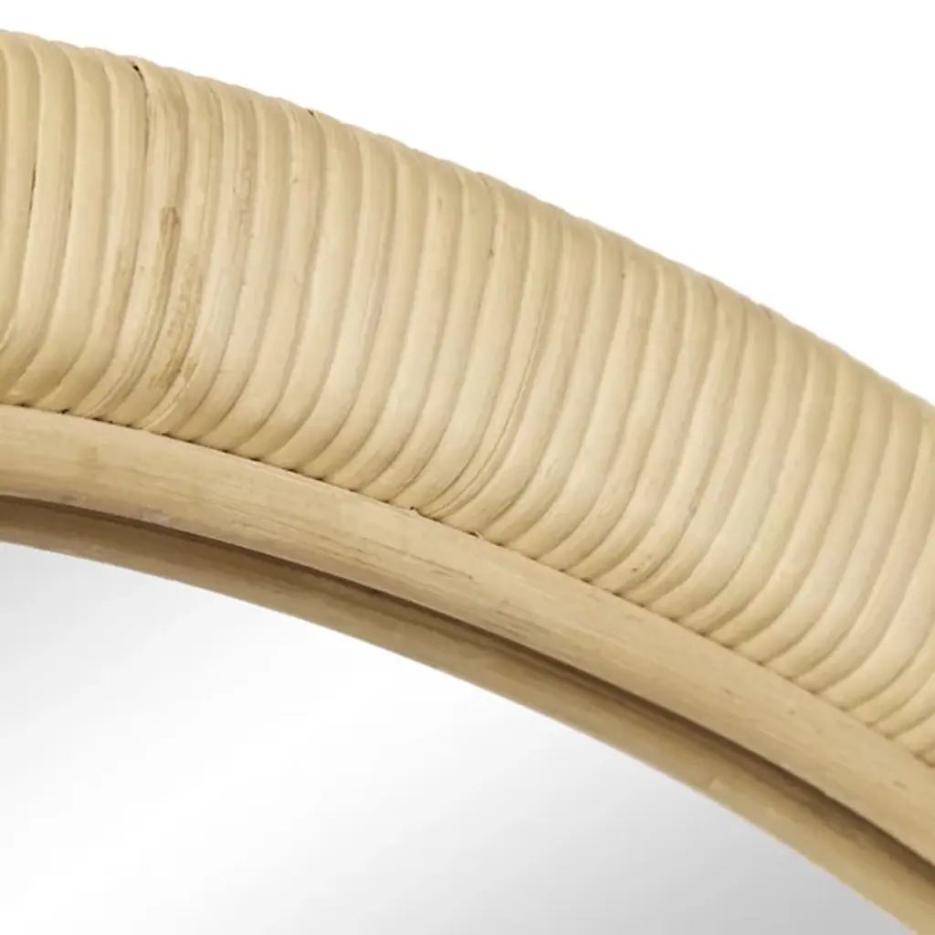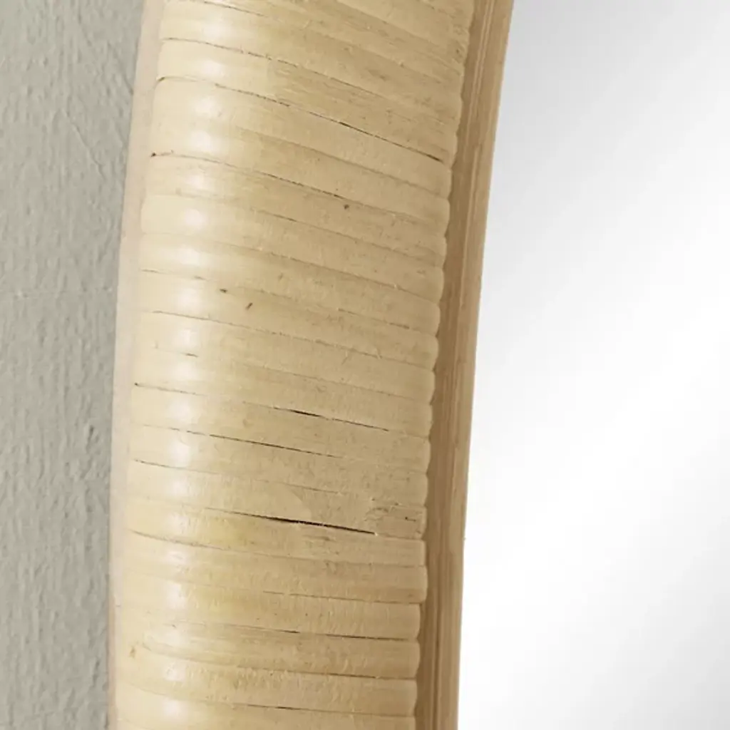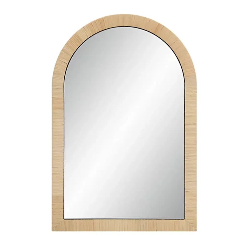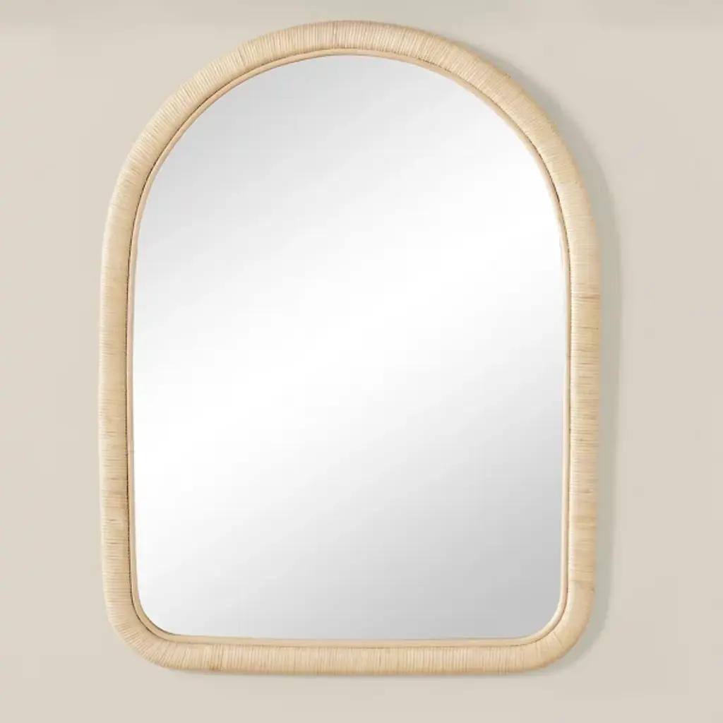 The Paloma Arch Mantle Wall Mirror from Woven showcases sustainable rattan craftsmanship through minimal design. The arched frame features fine-wrapped details that add understated dimension without overwhelming the piece. Its natural materials also bring a warm, artisanal presence while its clean lines add a more modern feel. This simple, low-profile design makes this piece particularly suited for spaces in need of a gentle natural accent.