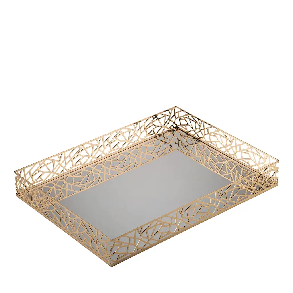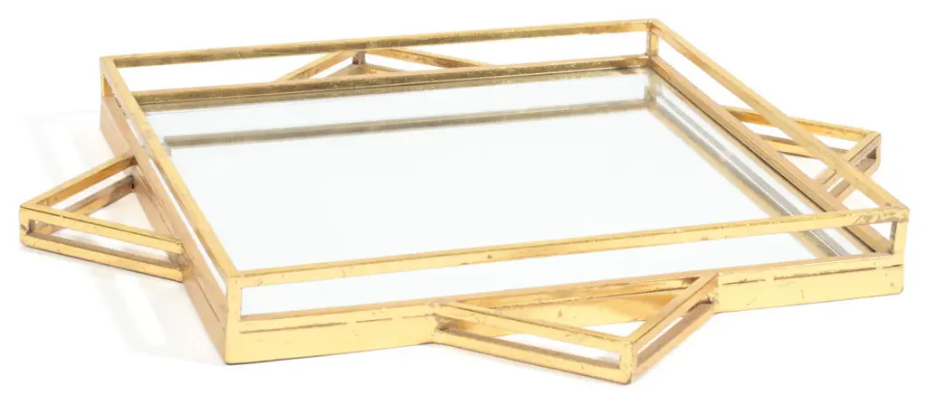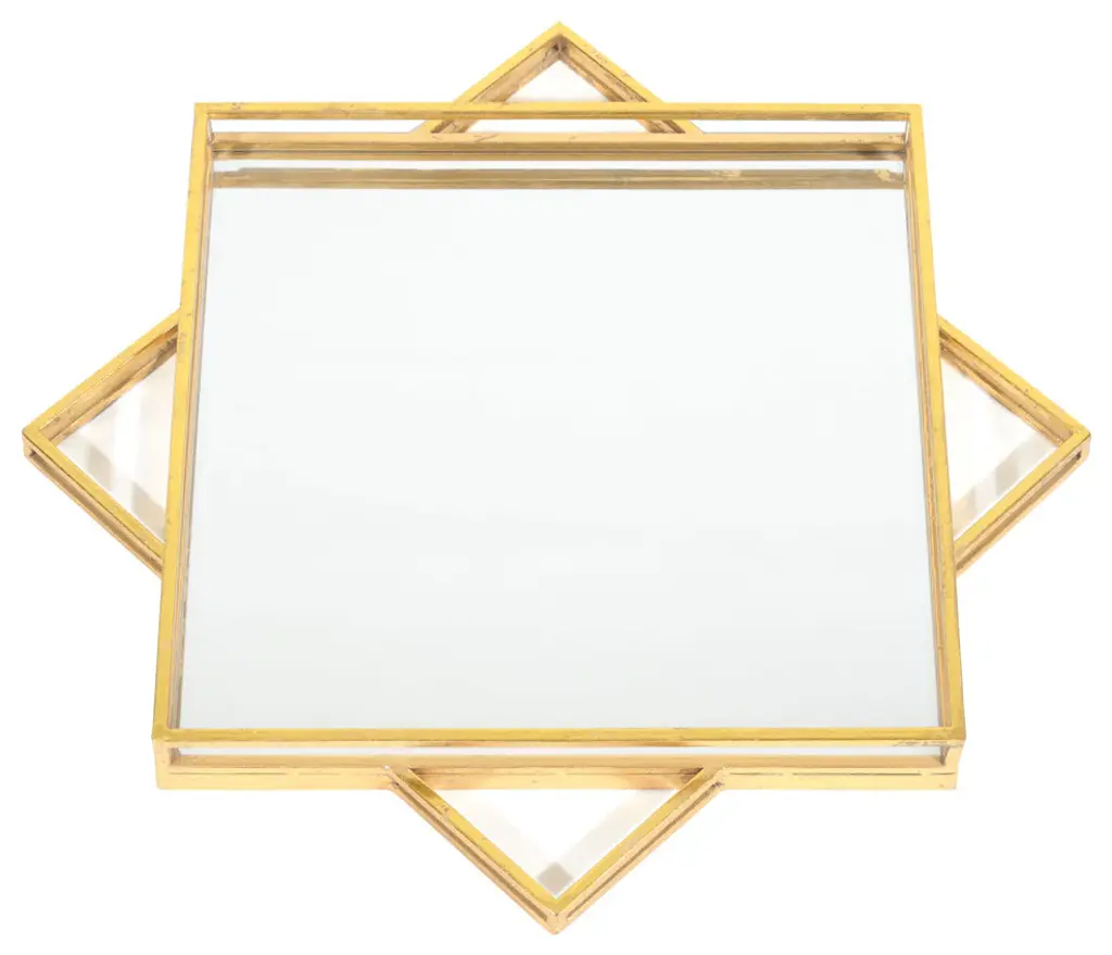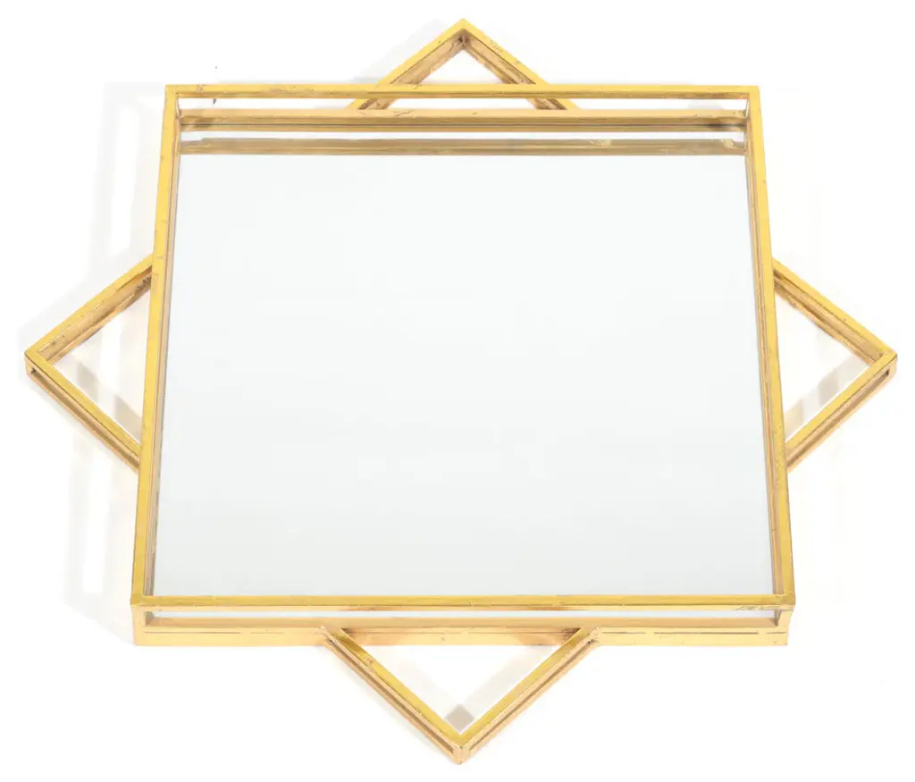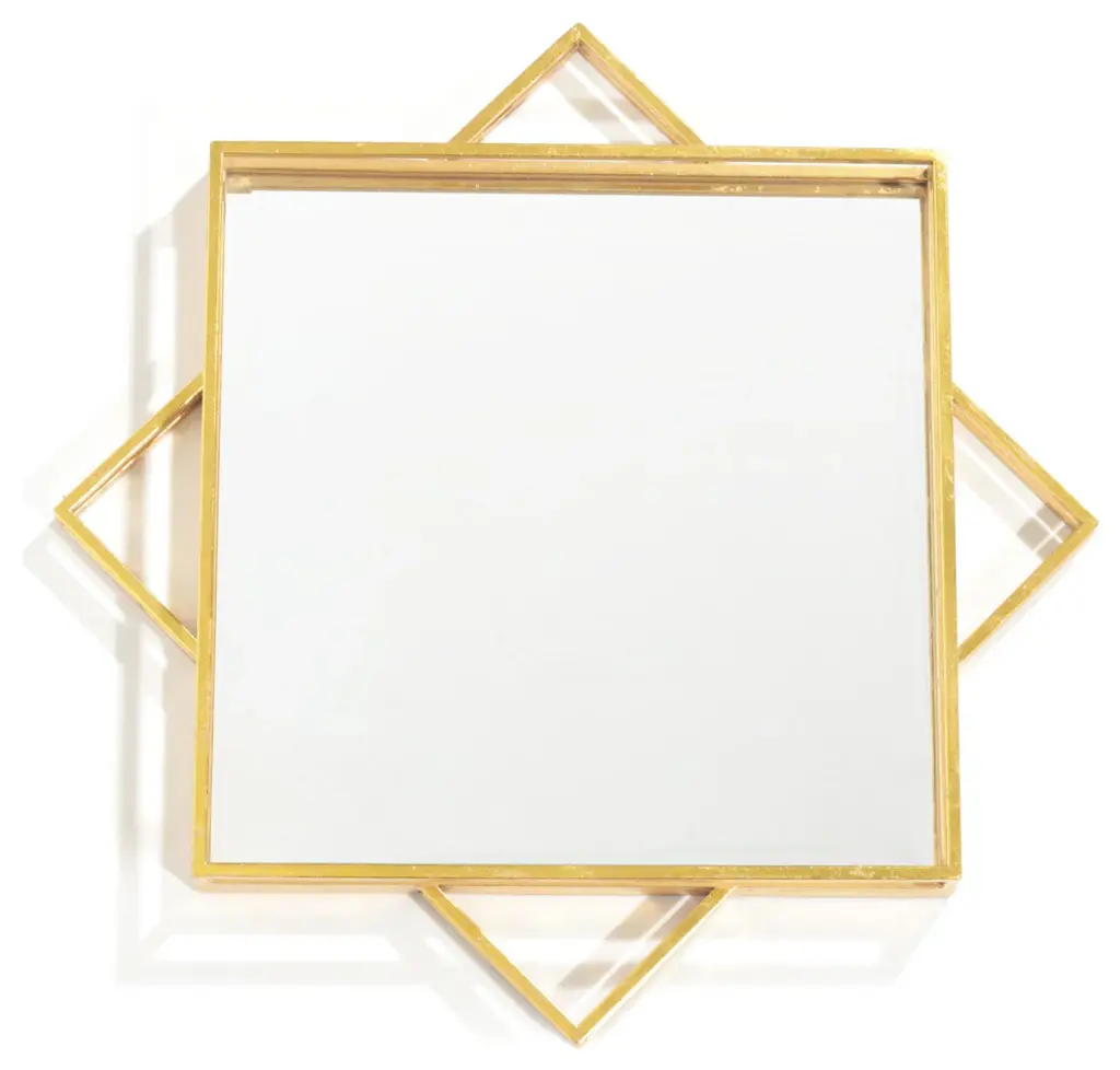 Add a touch of gold to your space with this geometric inspired metal framed mirror. Perfect as a contemporary piece to add a bit of geometric flair to your designMirror dimensions: 16" x 16"
