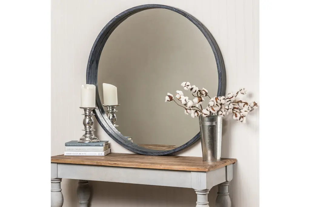 Ruggedness abounds in the simple round frame of Cooper Classics Parson Mirror. Creatively crafted of quality polyurethane, the Parson Mirror by Cooper Classics offers an inkling of industrial style due to a meticulous aged gray finish that fits with ease into many modern motifs. Larger in size, yet lightweight for effortless installation, Cooper Classics Parson Mirror draws the eye in all manner of dcor aesthetics.