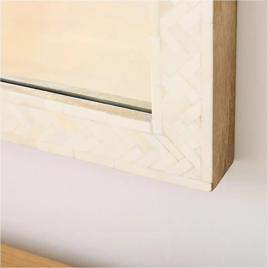 Reinterprets the original iconic Parsons design. The simple yet substantial frame. Adds dimension and texture to any room. No two mirrors are alike due to natural bone variation.