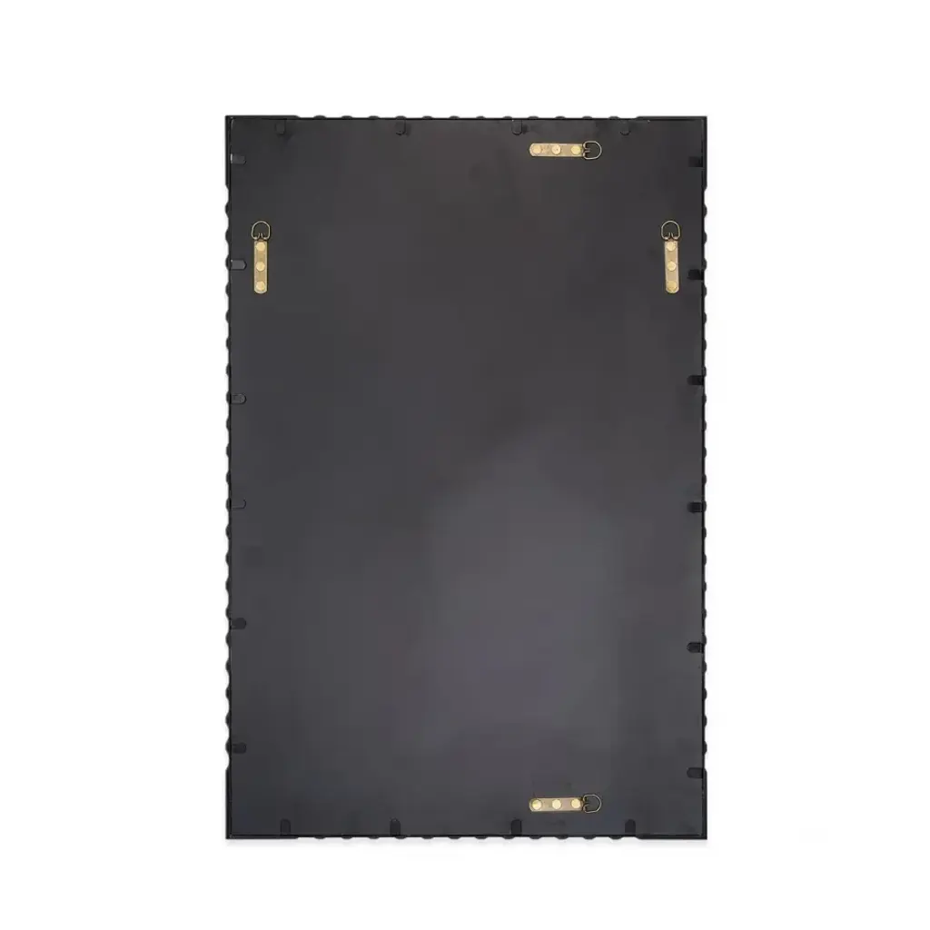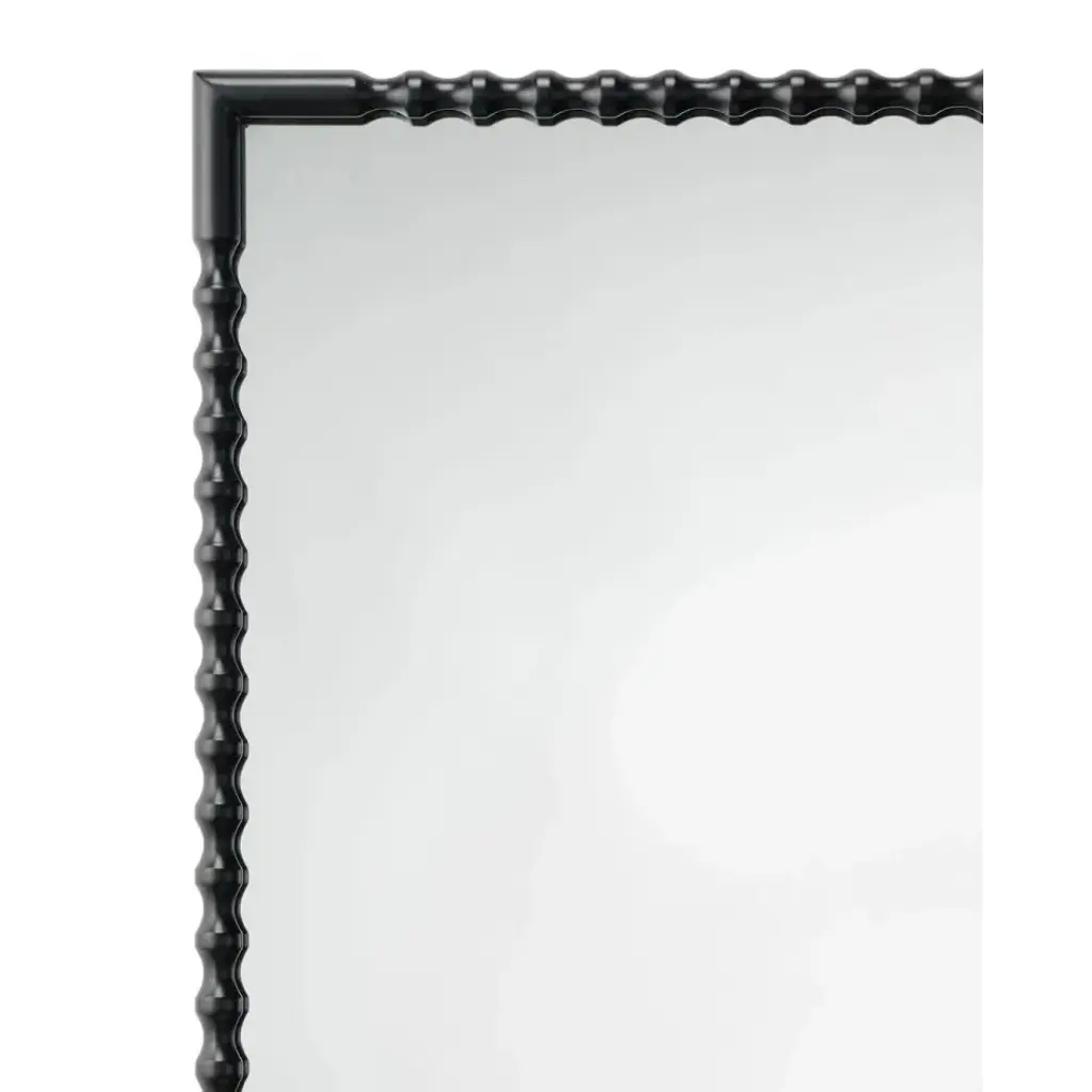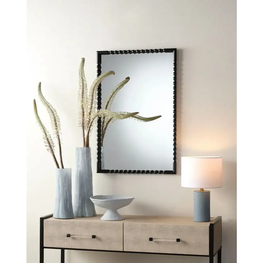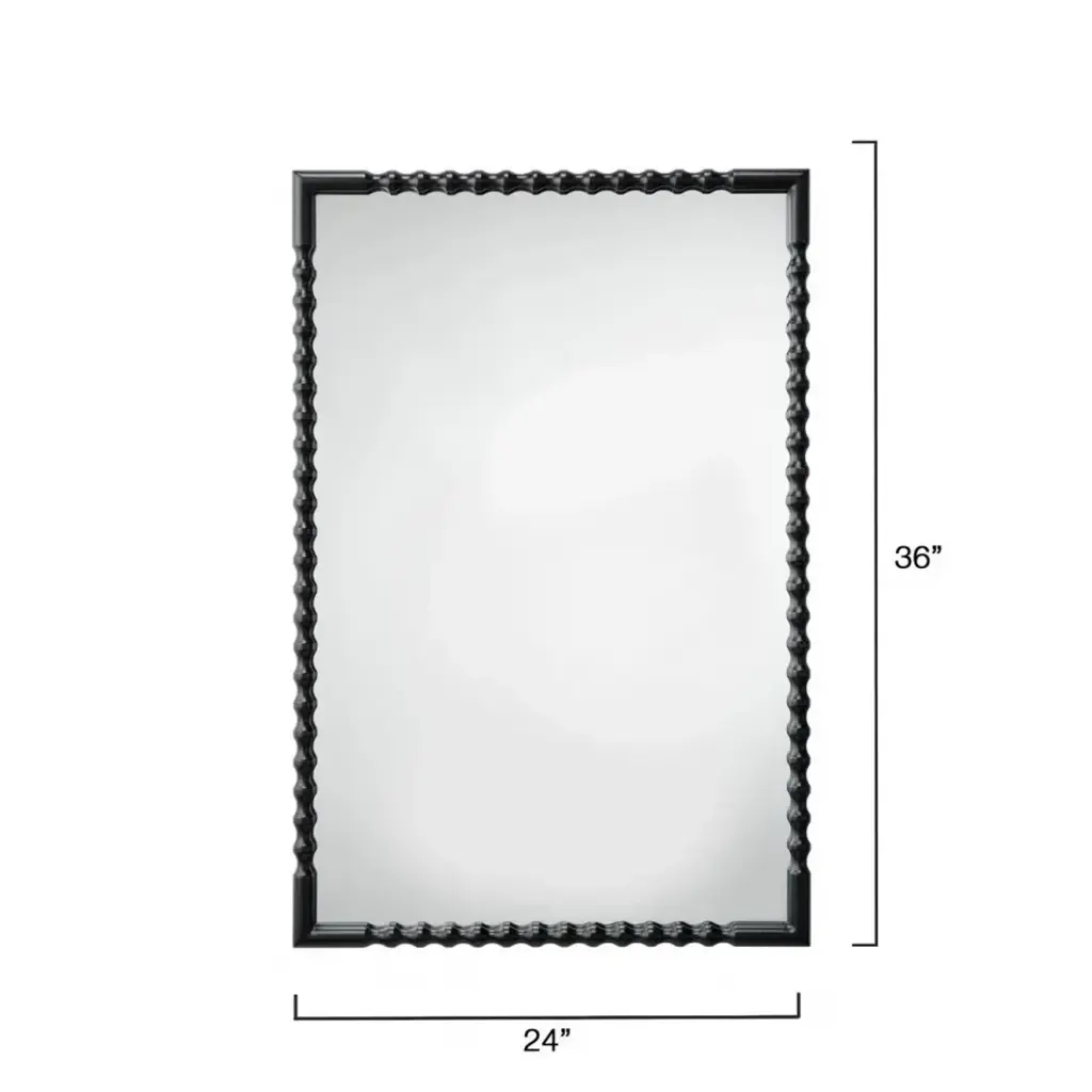 This striking yet understated wall mirror features a handwrought metal frame in a sleek black satin finish. Hang it horizontally above a sofa or powder room vanity, or vertically to illuminate an entryway. Its elegant, simple lines beautifully enhance your décor without overpowering it.