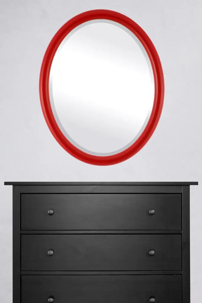 Pasadena Framed Oval Mirror, Holiday Red, 19"x25"