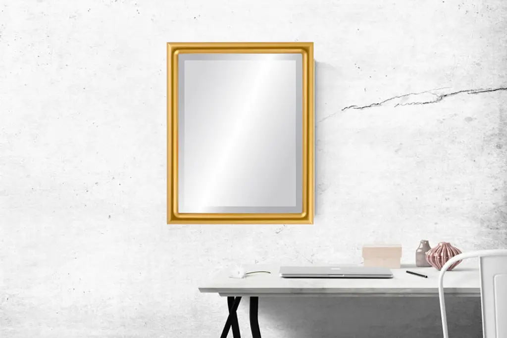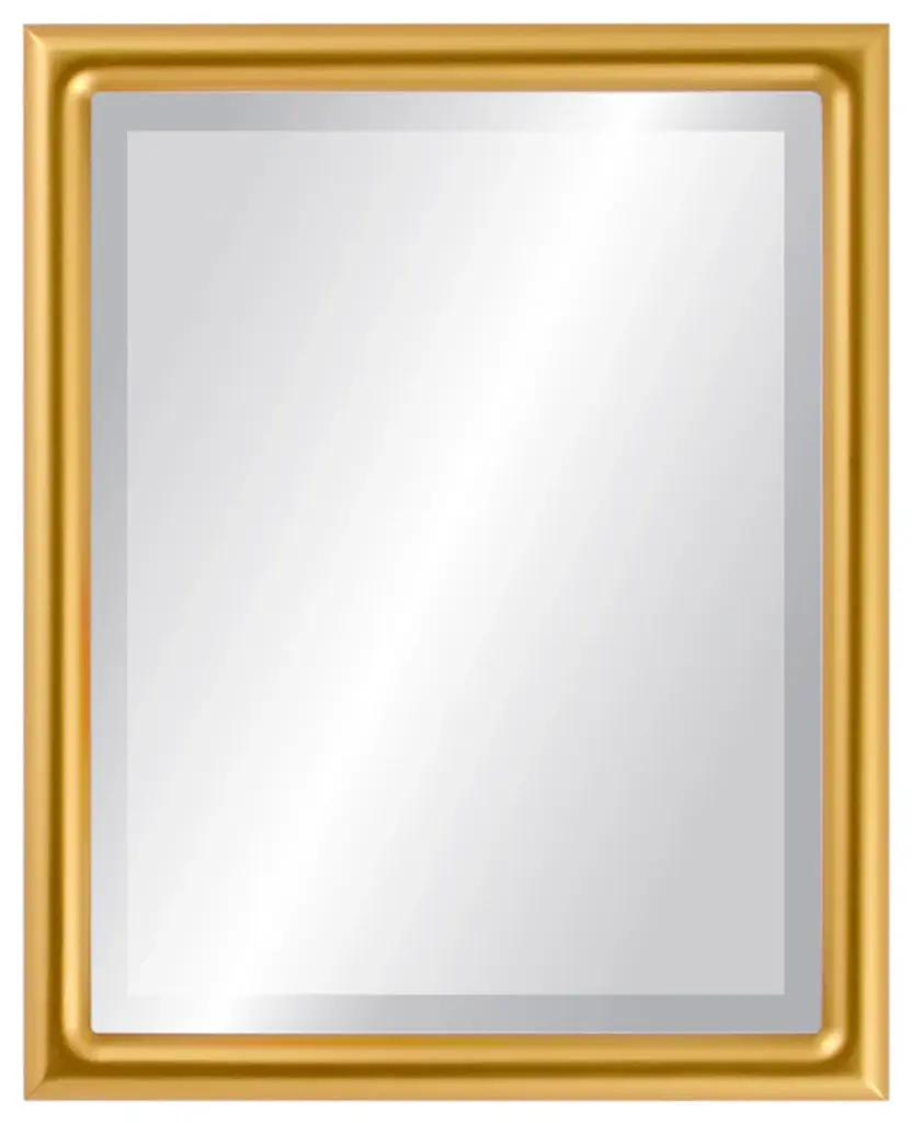 A wood frame with a one inch wide half round profile. The cut of this frame is simple and minimalist. A solid gold painted frame that is hand finished to provide a soft gold appearance. Light stains and streaks are applied to give added depth, which gives this frame an antique and classy feel. The Framed Mirror features a Gallery Quality Hand Finished Wooden Frame with a Distortion Free 1" Beveled Mirror. This Framed Mirror arrives ready to hang with hardware pre-installed for vertical or horizontal hanging.