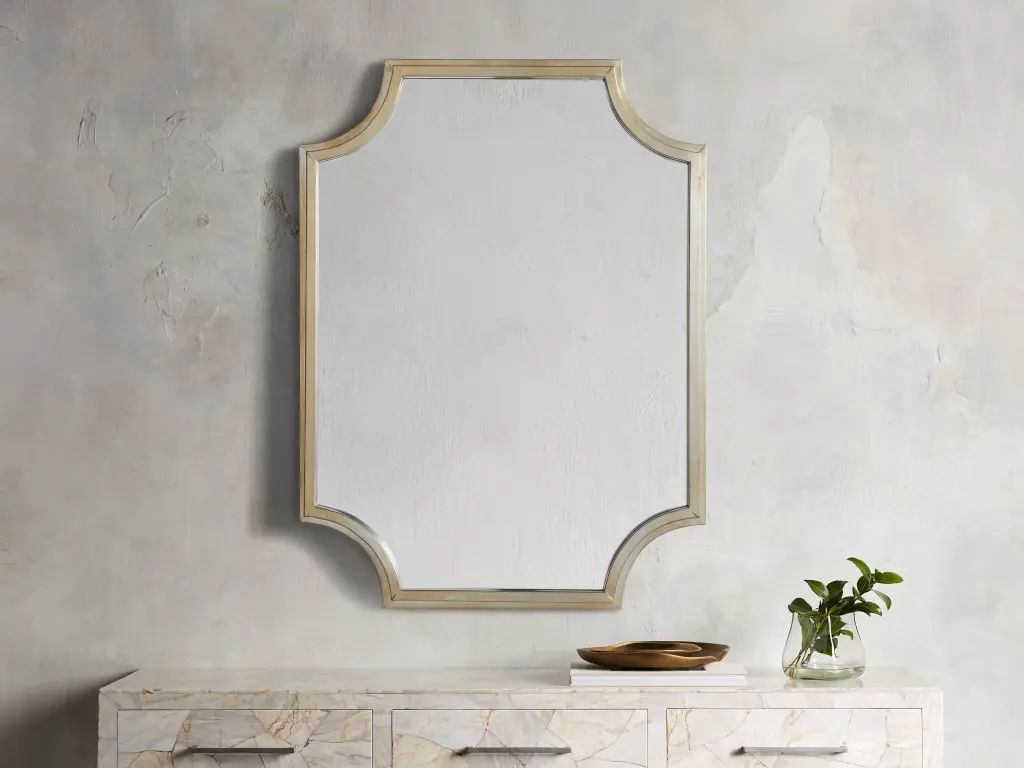Chic and stately, our Pascal mirror’s modern, sophisticated design features a dramatic silhouette. Steel frames showcase a hand-applied gilded silver finish for added luxurious effect.