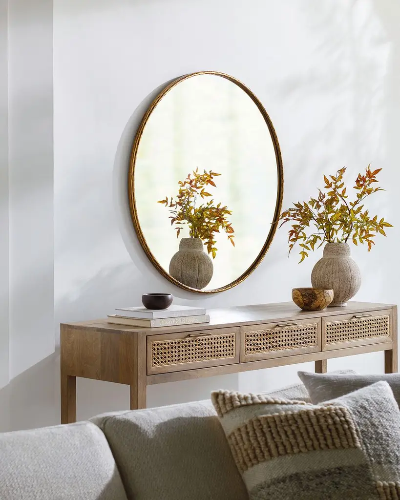 Introducing the accent wall mirror, a stunning representation of minimalist modern style that adds a dash of elegance to any living space. This sleek and sophisticated piece is more than just a mirror, it's an exquisite piece of art that enhances your home's aesthetic while simultaneously creating an illusion of added space. The care for this remarkable decor piece is effortless - all it requires is a gentle wipe with a dry cloth to keep it sparkling clean. Avoid harsh cleaners to ensure its beautiful finish remains intact. Perfect for those who appreciate simplicity with an edge of sophistication, this mirror transforms your living area into a trendy, modern sanctuary.