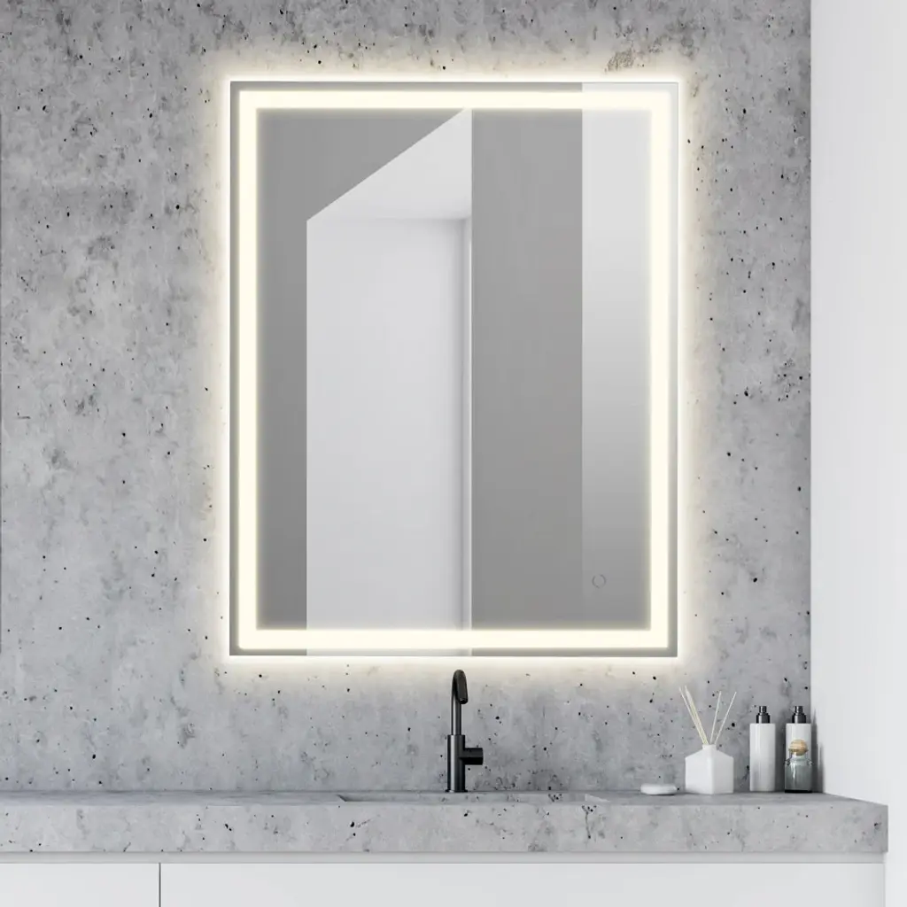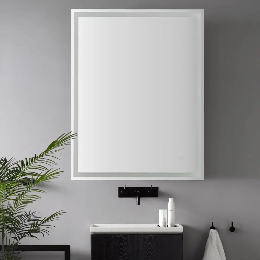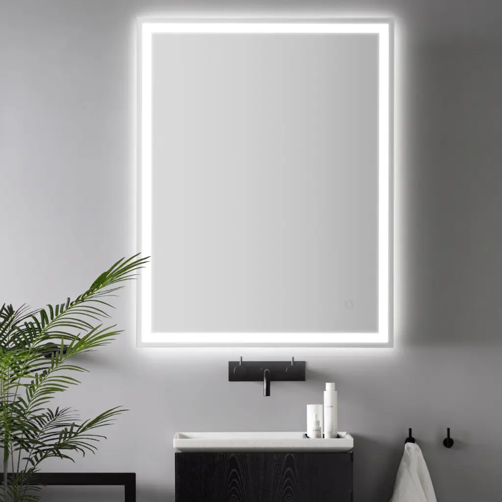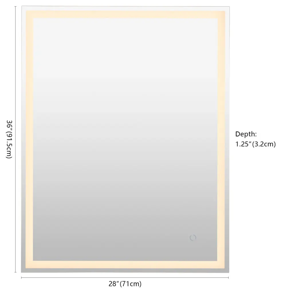 Give your bathroom a modern update with our frameless LED mirror. The minimalist design features an anti-fog mirror in a front and backlit frame. Integrated LEDs provide three options for bright, warm light and a smart touch control remembers your last setting.Features:• Eco-friendly LED lights are built in and never need replacing; integrated LED mirrors have a lifespan of over 15 years with normal use• Dimmable integrated LED lighting with touch sensor; choose white, warm white or yellow light• Sleek, modern mirror hangs horizontally or vertically; the frontlight and backlight adds ambiance and a soft nightlight• Long lasting LED lighting-50,000 hours expected lifespan• Color temperature range is 3000K to 6400K, 90+ CRI• 1-year warranty• Touch Sensor with Dimmer• Mirror Orientation: Horizontal/Vertical• Body Material: Aluminum• 36 inches high x 28 inches wide x 1.25 inches deepAbout us:You see an ordinary mirror.We see an enhancement to help with making your fashionable statement.A perfectly smooth-edged frame with LED lighting and uniform surface casts a flaring reflection of the subject and surroundings. Our vast mirror catalog includes a variety of designs, shapes and sizes.JONATHAN Y Lighting - a fashion revolution in home decor.