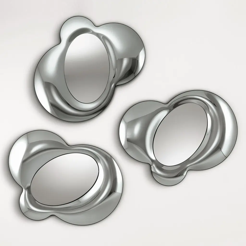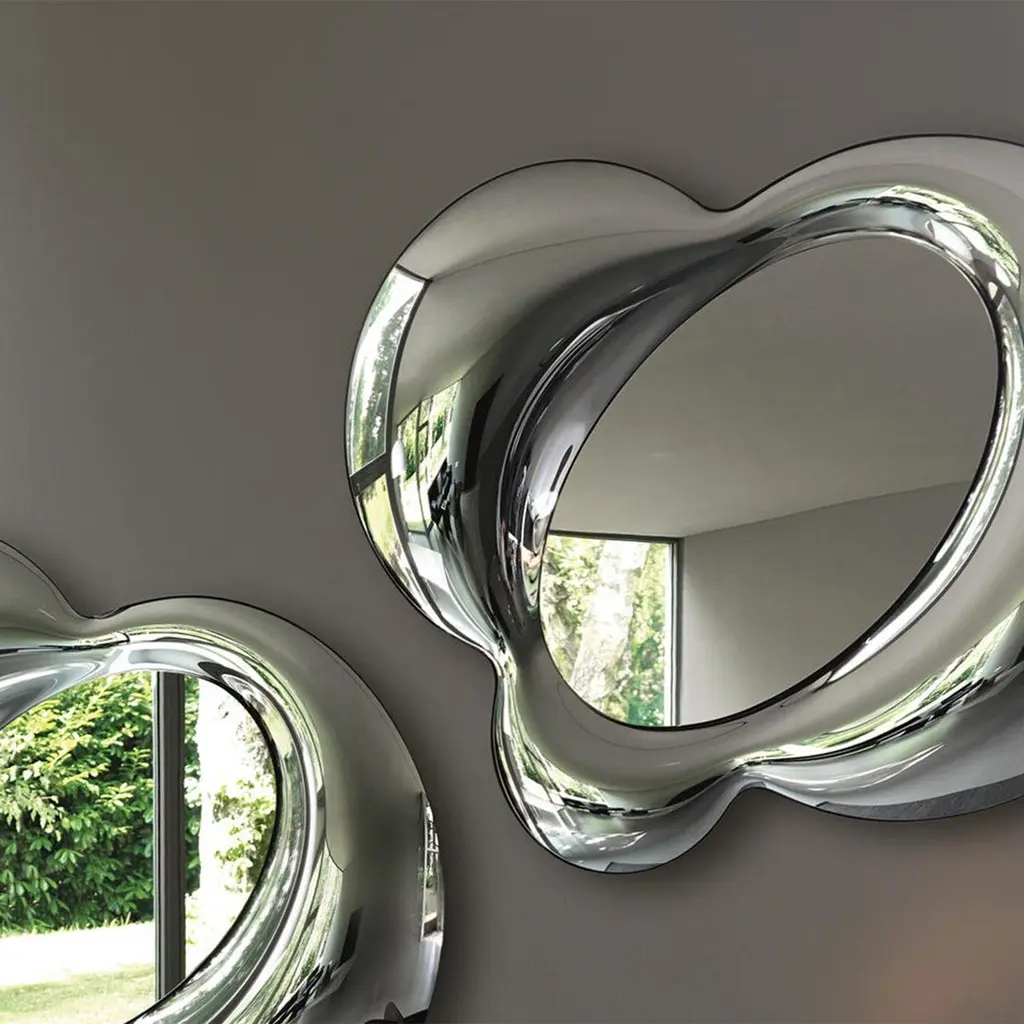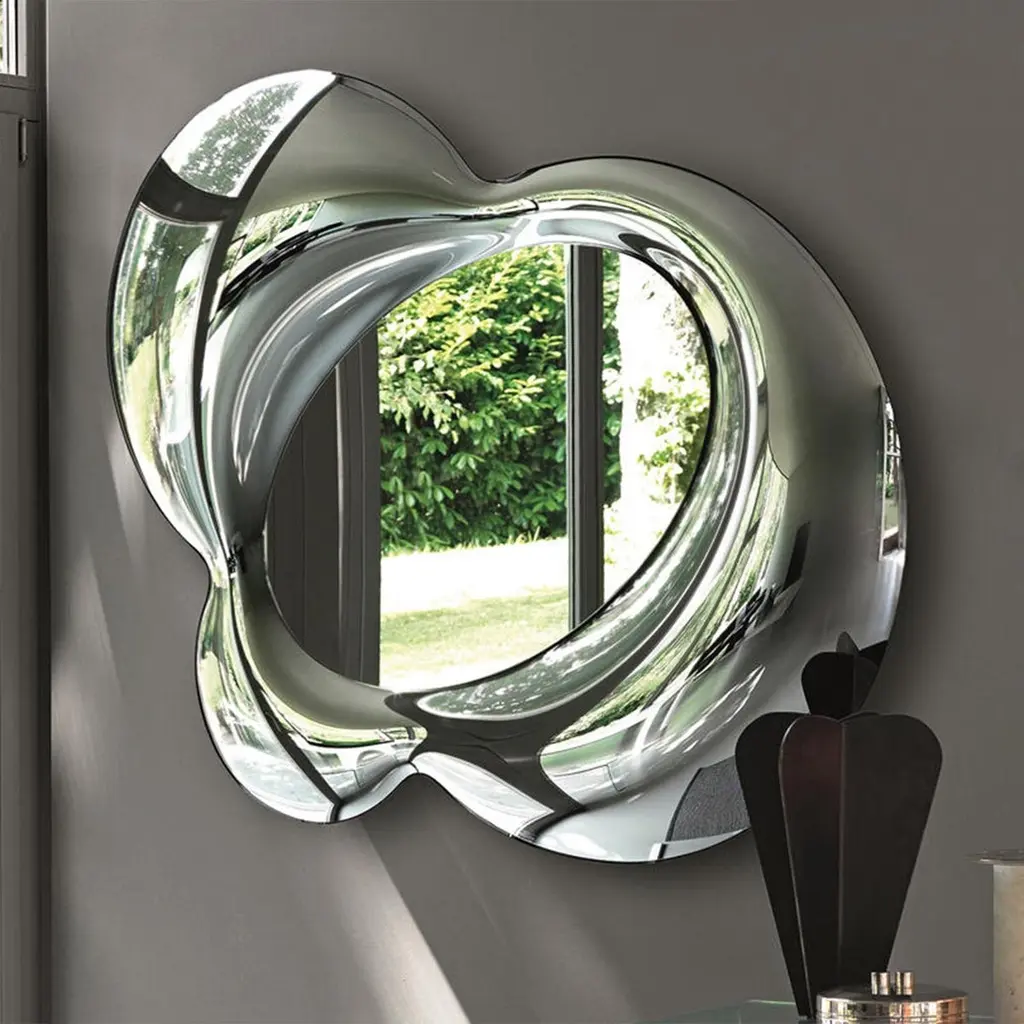 Mirror Pearl Smooth with frame in fused mirror glass,8mm thickneess. With flaat central mirror glass, 5mmthickness. with fixing panel at the back with differenthanging positions.