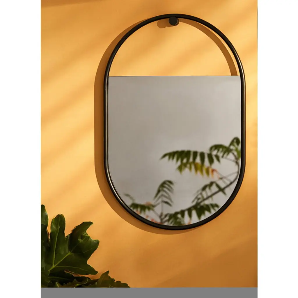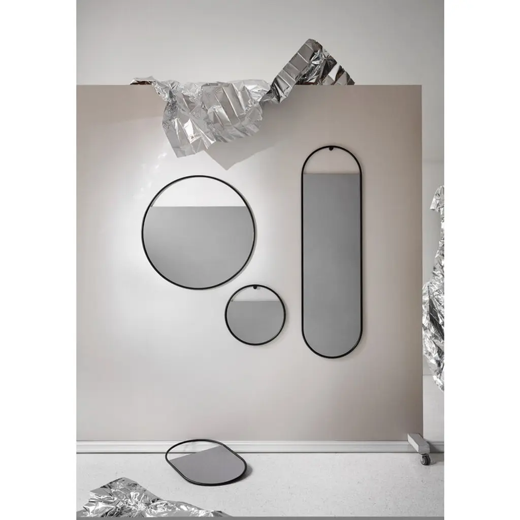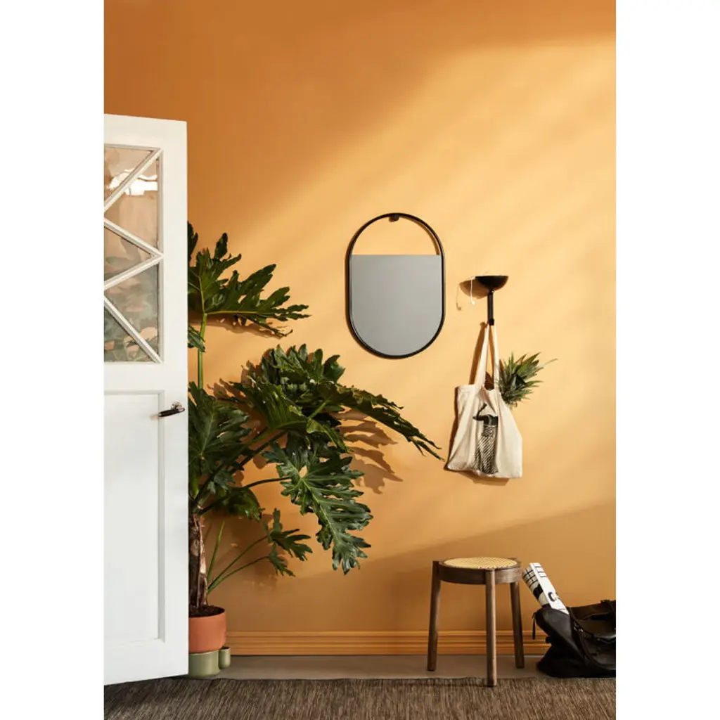 Northern's Peek mirror is a charming oval-shaped wall mirror with a striking strong black frame. Inside the frames, the silvery tinted mirror glass itself doesn’t fill the entire surface but is left blank at one edge to reveal the wall behind the mirror – as if it were peeking through it. The effect is only heightened if the Peek mirror is hung on a colorful wall. This stylish mirror is designed by Elina Ulvio and is perfect for the bathroom, bedroom, or hallway. The Peek mirror can be hung vertically or sideways on the wall, depending on the space and your needs.