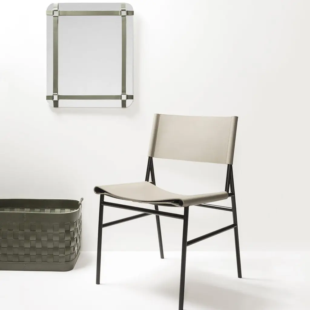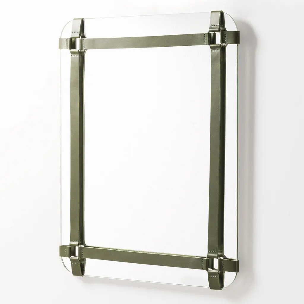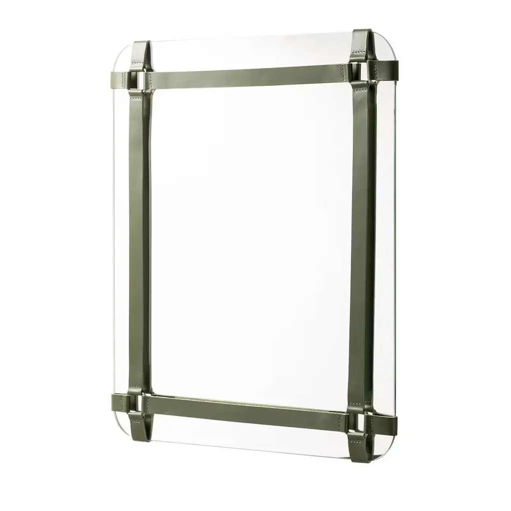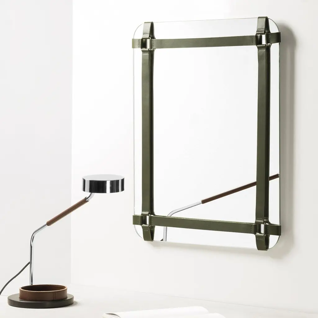 This wall mirror of the Rabitti 1969 collection is perfect for a modern and contemporary design. The frame is made of vegetable tanned saddle leather, which has a special waterproof finishing that lets the leather dry perfectly, without losing its features or leaving color stains after getting wet.