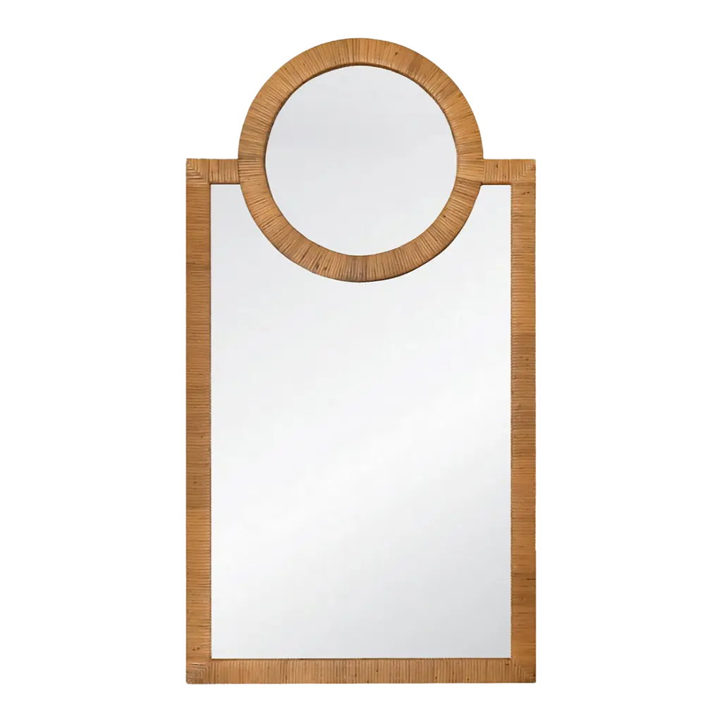 Named after an island off the east coast of Africa, the Pemba mirrors deliver energetic warmth through natural features. Split rattan is hand-wrapped over a steam-bent rattan pole frame of two segmented concentric circles with a mirrored glass center. Hang over a bathroom countertop or in a living room to add warmth and depth. Available in two sizes.