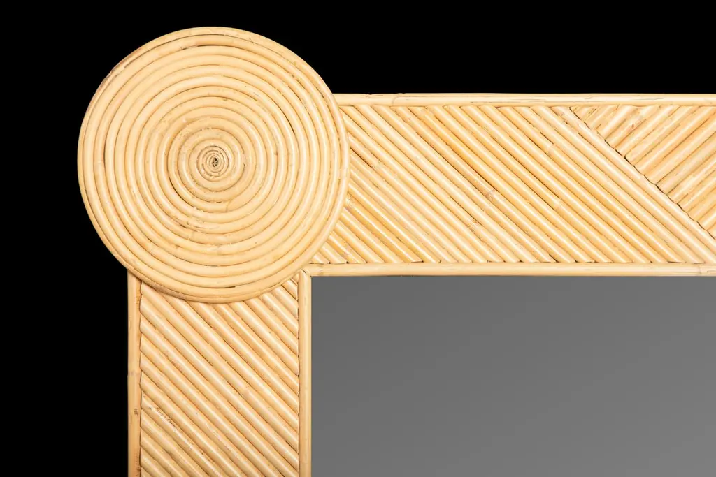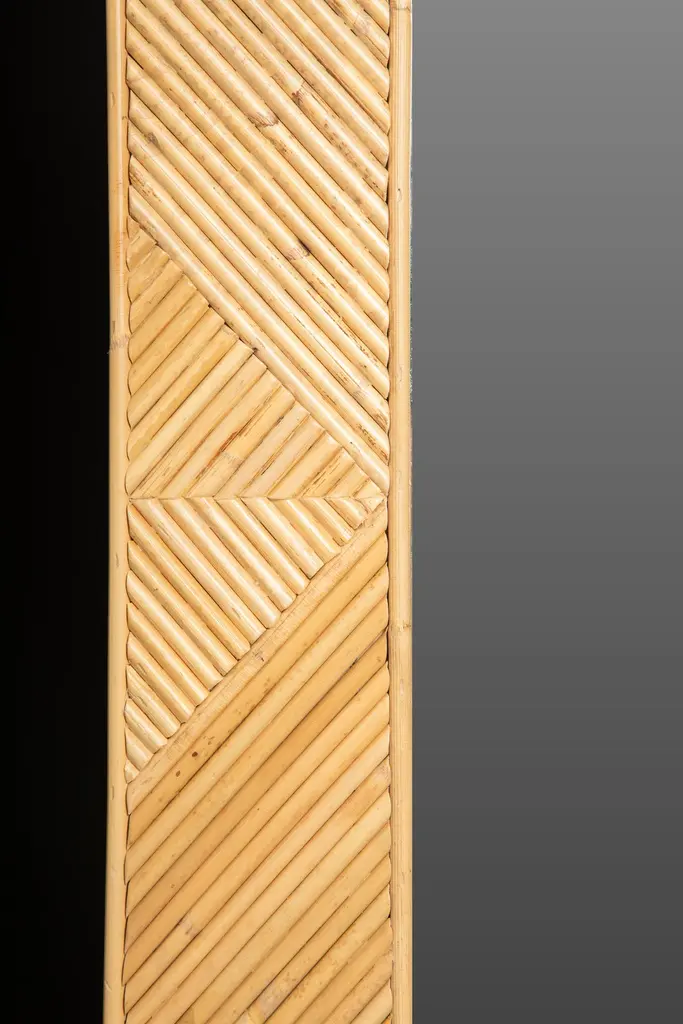 Pencil Reed Rattan Geometric Wall Mirror 53.5"HIntroducing Creel and Gow's exclusive wicker and rattan collection, designed by Marco Scarani. We're proud to offer our customers these revised vintage rattan furniture pieces that have been skillfully crafted in collaboration with an atelier in Morocco.Our partnership with the atelier has been ongoing for several years and has resulted in a collection of rattan furniture that is both timeless and elegant. The atelier's skilled artisans have a deep understanding of traditional weaving techniques and use only the finest materials to create each piece.Marco Scarani's designs for this collection combine the classic appeal of vintage rattan with modern sensibilities, resulting in pieces that are both stylish and functional. The collection includes chairs, sofas, and tables that are perfect for any living space, whether it's a cozy corner or a larger lounge area.The Creel and Gow wicker and rattan collection is designed to bring a touch of timeless elegance to any home or commercial space. The pieces are versatile and work well with a range of decor styles, from traditional to contemporary. Moreover, the collection is perfect for those who appreciate the quality of handmade furniture and the unique character that each piece possesses.Measures: 42.5" x 2" 53.5" H
