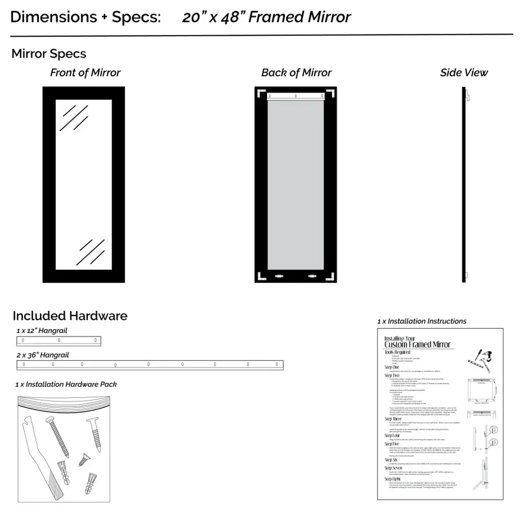 Pendleton Framed Wall Mirror, Black, 20" X 48"
