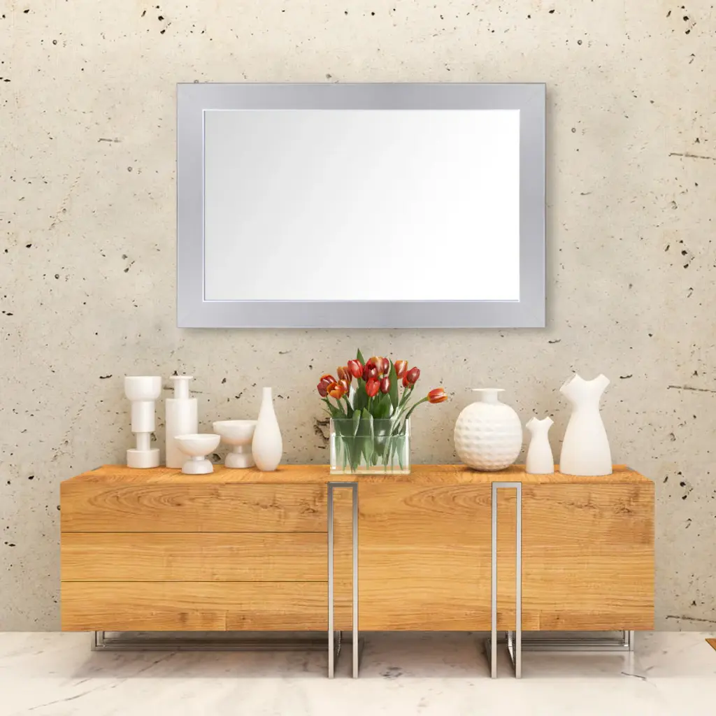Pendleton Framed Wall Mirror, Brushed Chrome, 36"x36"