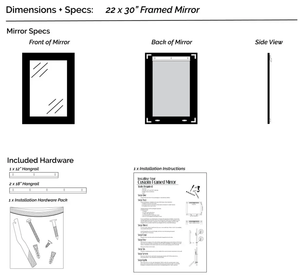 The wide, smooth surface of the Pendleton framed mirror is a great finishing touch for your space. With its contemporary style, the Pendleton is always a good choice.Hangrail for installation will be applied on the width of the frame. All assembly hardware and instructions will be included. Additional hangrails are included if the opposite orientation is desired for installation. The dimensions displayed are the final outside dimensions of the frame, including the mirror. CATII safety backing applied on all mirrors. Approved for high-moisture areas such as bathrooms.