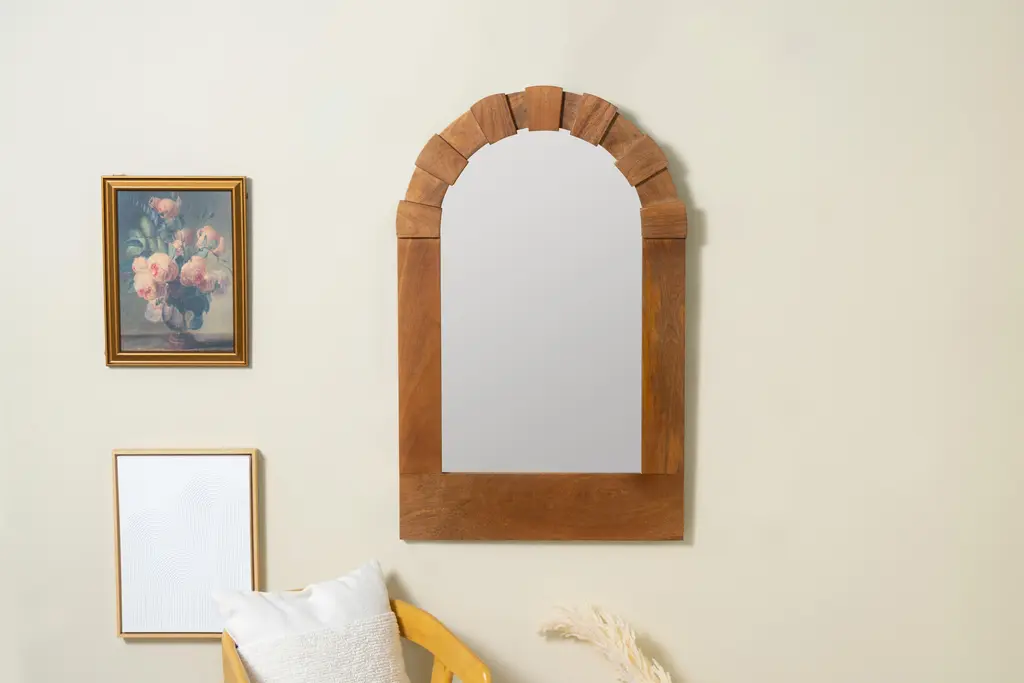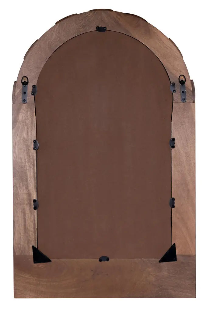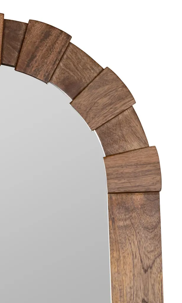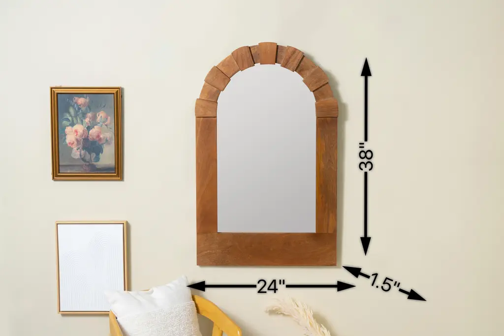 The beautiful Penny wall mirror features an intricate hand-crafted frame & finish. This piece is sure to add a statement to a space of any style. Finish: Walnut Material: Wood Glass Dimensions: 29.00x16.75 Hangs Both Ways: No Beveled: No Use Case: Commercially Approved, Outdoor/Damp-rated. Installation: Ready-to-hang with included, D-Ring Hangers. Details: Hand-crafted Frame, Hand-crafted Finish Care: Wipe Clean with a damp, microfiber cloth.