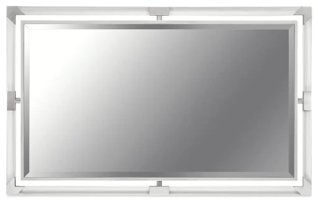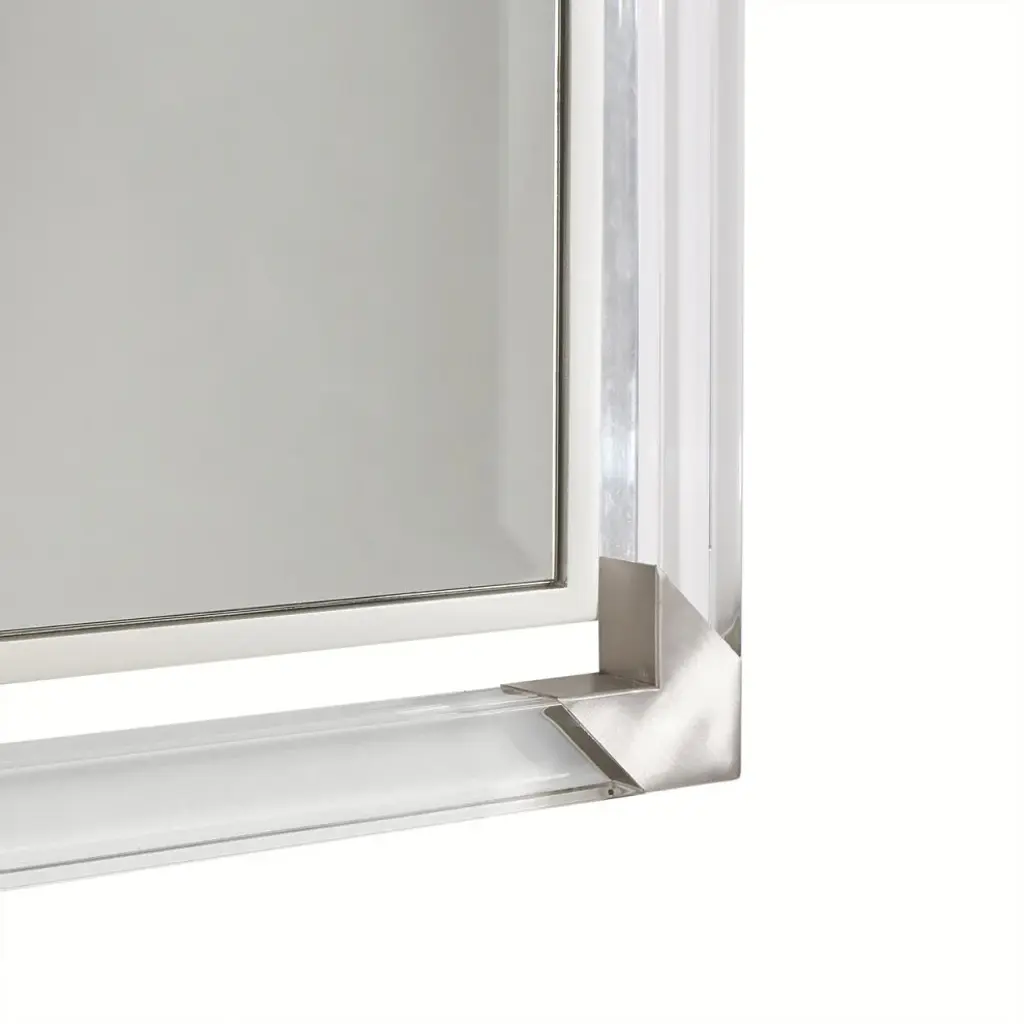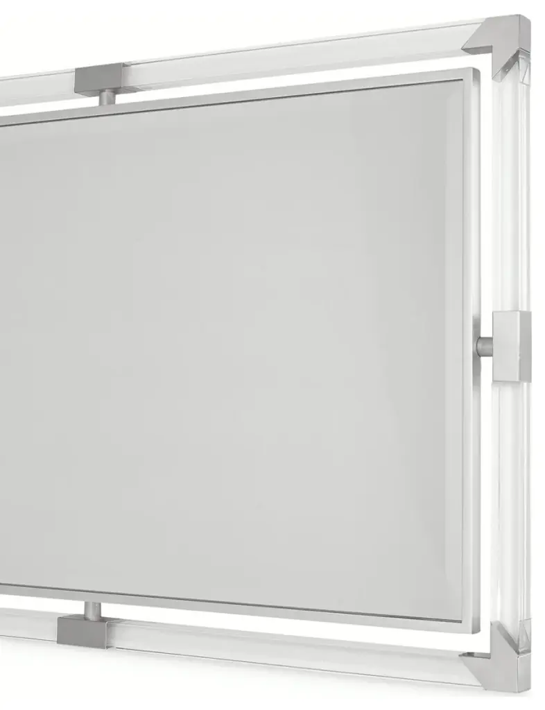 Refine your contemporary style with the sleek and glamorous Penthouse Wall Mirror. Featuring a bold rectangular acrylic frame with brushed stainless steel corner accents and center bands, this mirror brings a touch of modern luxury to any space.The stainless steel details add an elegant contrast to the transparent acrylic, making it the perfect piece to enhance your room''s décor.Whether in a hallway, bedroom, or living room, the Penthouse Accent Mirror blends effortlessly with any contemporary interior.Designed for wall mounting, this mirror is easy to install with included hanging hardware, ready to instantly brighten and elevate your living space.